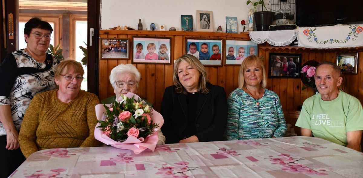 Ob tej priložnosti so jo obiskale predsednica KO RK Otočec Alijana Guculovič in članica Marija Kuplenk ter predstavnica Krajevne skupnosti Otočec Brigita Macedoni, ki ji je s šopkom voščila tudi v imenu novomeškega župana Gregorja Macedonija. Vnuk Martin je babici izdelal rožico z oznako 90, ki so jo domači v čast njenega praznovanja postavili na vrt.