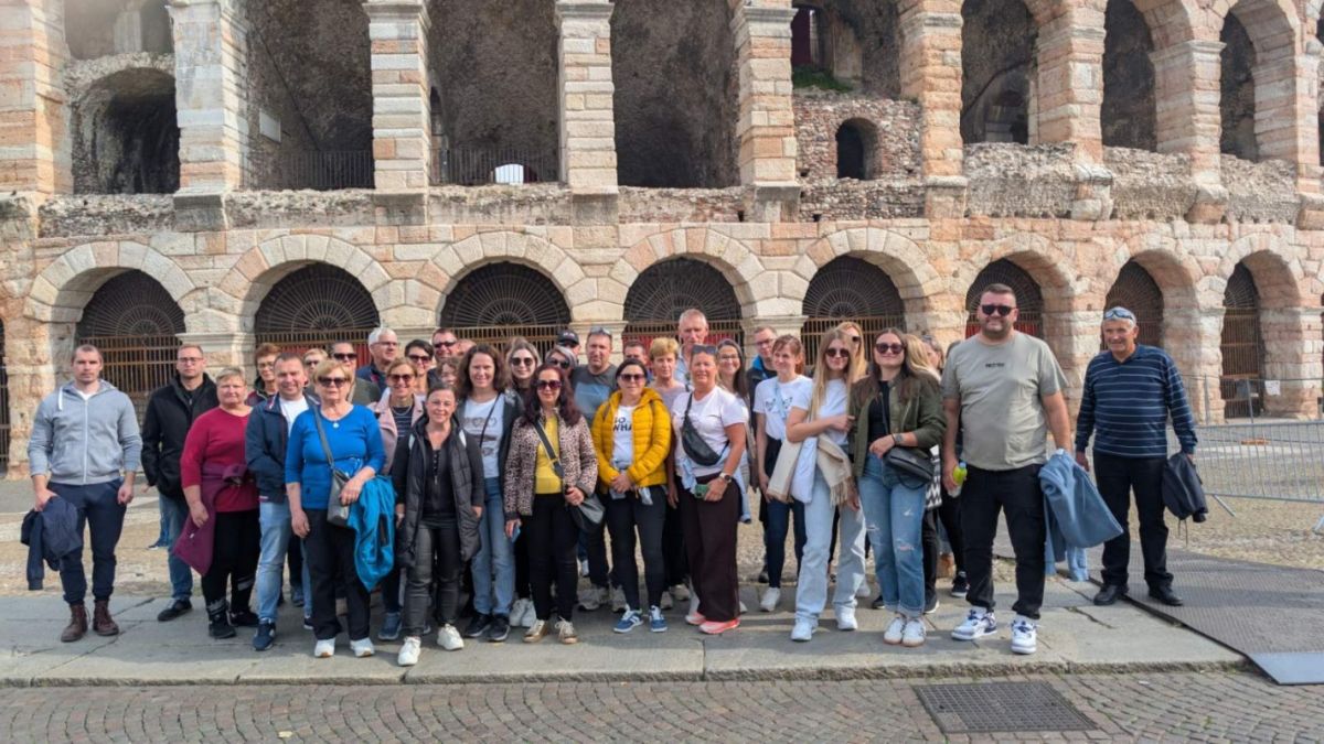 Naslednji dan so obiskali botanični park Grotta Cascata Varone, kjer jih je navdušil slap Varone, ki se izteka v skalno jamo. Izlet so sklenili v romantični Veroni, mestu Romea in Julije, kjer so si ogledali še nekaj znamenitosti, vključno z areno (na fotografiji), in se sprehodili po slikovitih ulicah starega mestnega jedra.