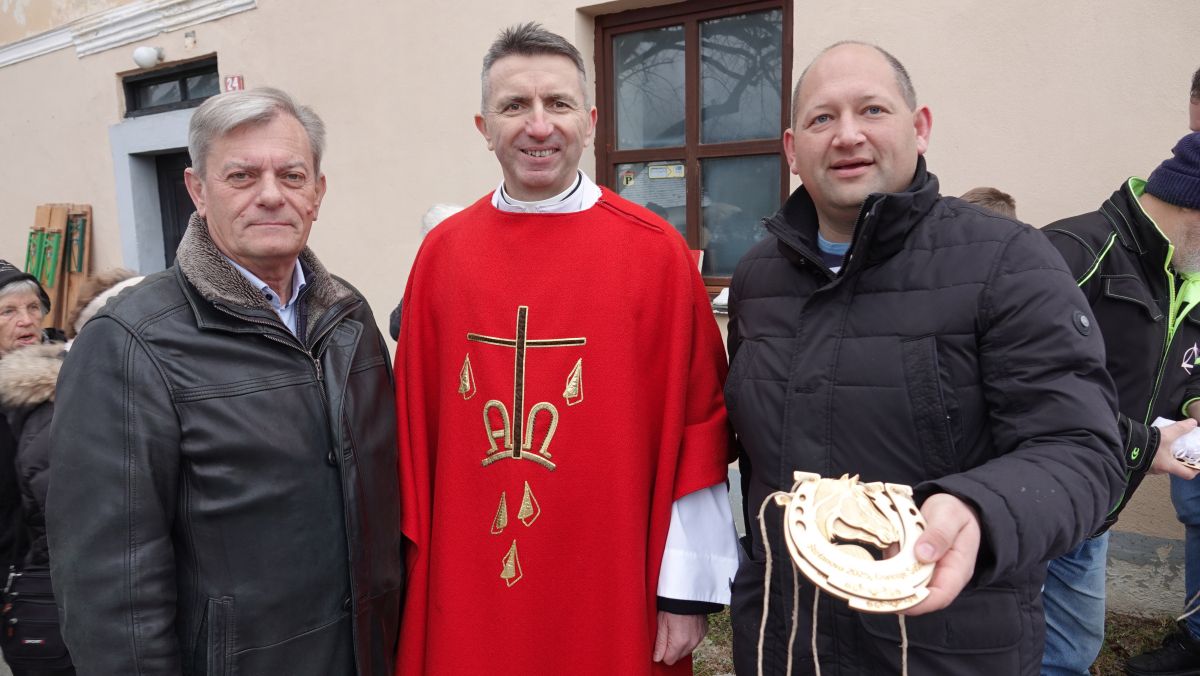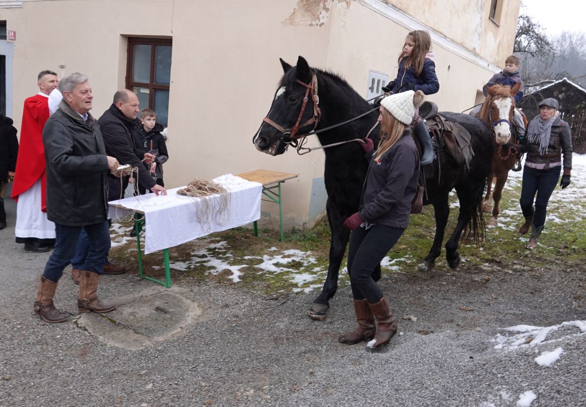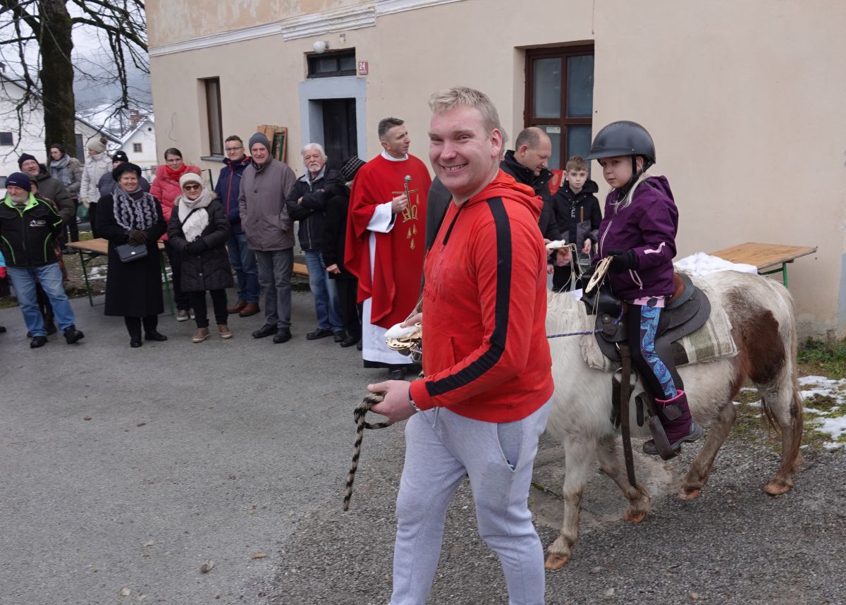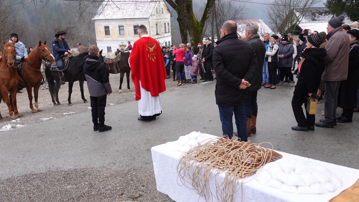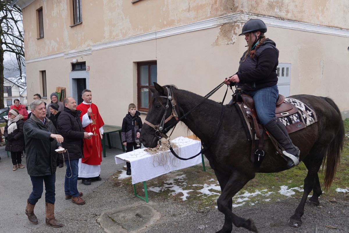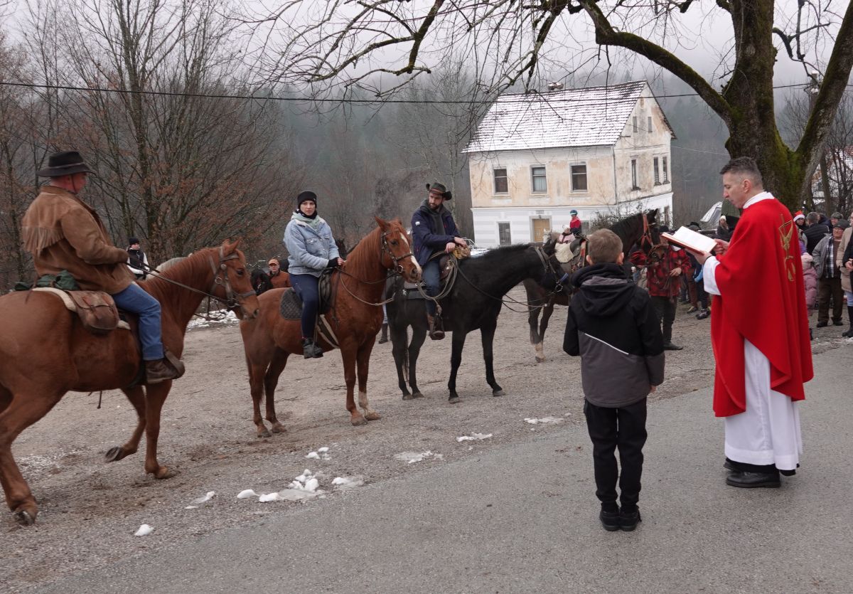 Ljubitelji konj so se po maši zbrali pred cerkvijo, ki so jo sezidali leta 1651 v spomin na hudo kužno bolezen, ta je v teh krajih divjala okoli leta 1645. Župnik Igor Stepan je opravil obred blagoslova soli, namenjenega živini, zemlji in ljudem, spominskih medalj in vseh prisotnih, nato pa se je konjeniška povorka zvrstila mimo cerkvenega obzidja.