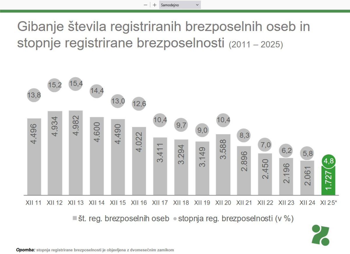 To pomeni 4,8 odstotno brezposelnost, kar je primerljivo z državnim nivojem (4,5-odstotna brezposelnost).