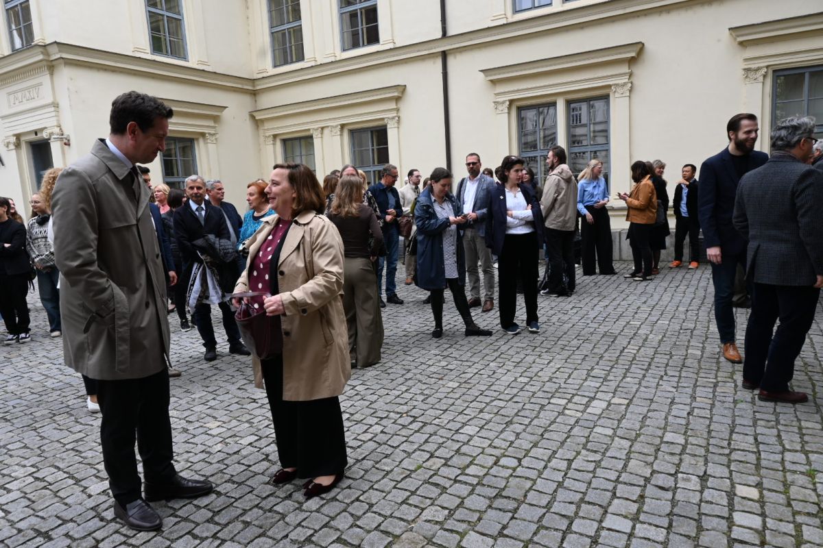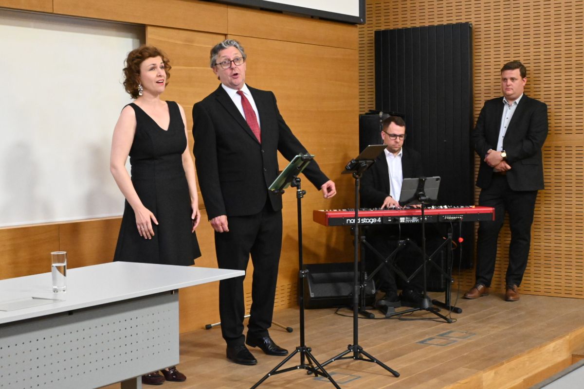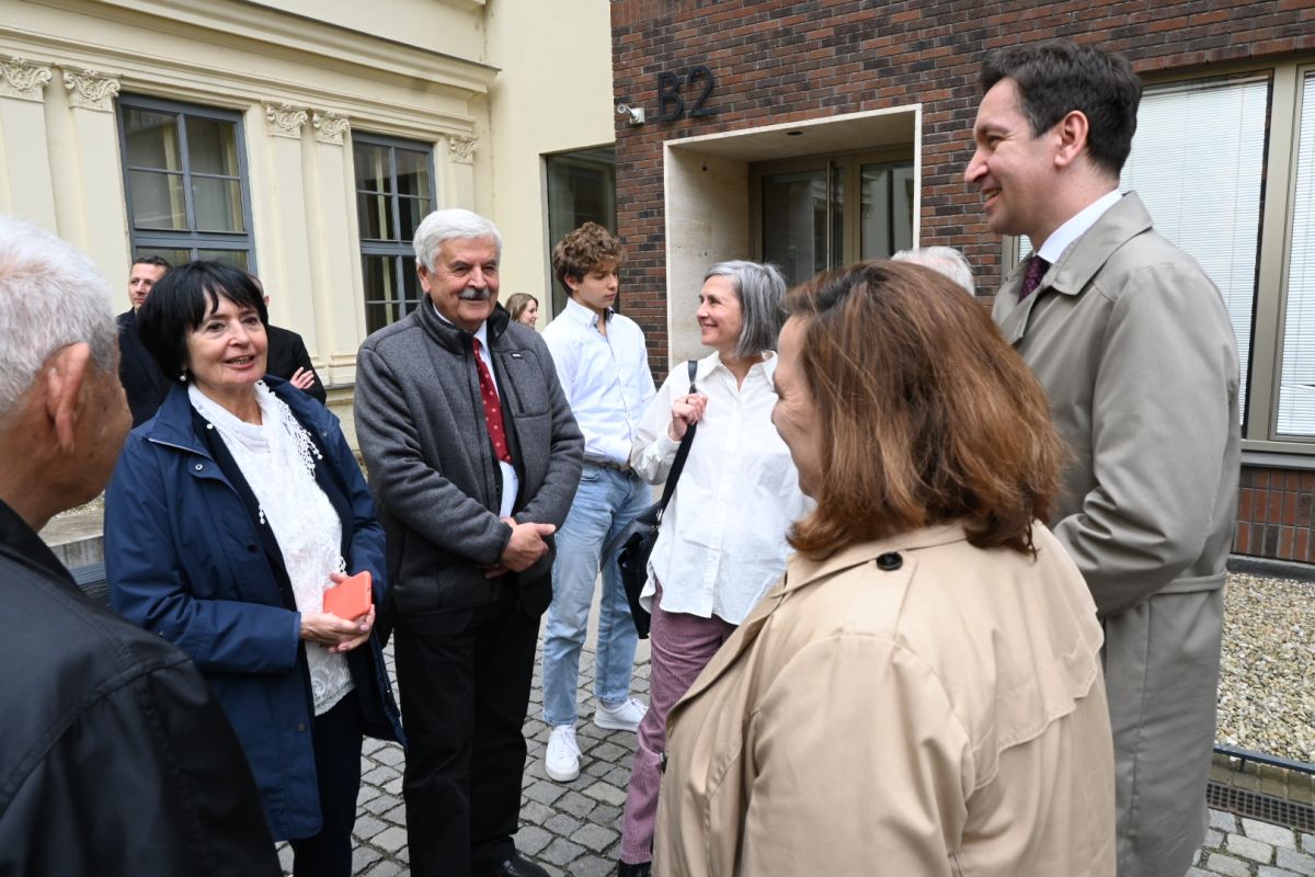 Zbrani so prisluhnili tudi predstavitvama zgodovine in načrtom za prihodnost oddelka. Posebej čustveno je bilo odkritje spominskega obeležja v zunanjem atriju Filozofske fakultete Masarykove univerze. S ponosom sta ga odkrila mlada pravnuka Mihajla Rostoharja. Iz Slovenije je namreč na dogodek prišlo več članov treh generacij družine Rostohar.