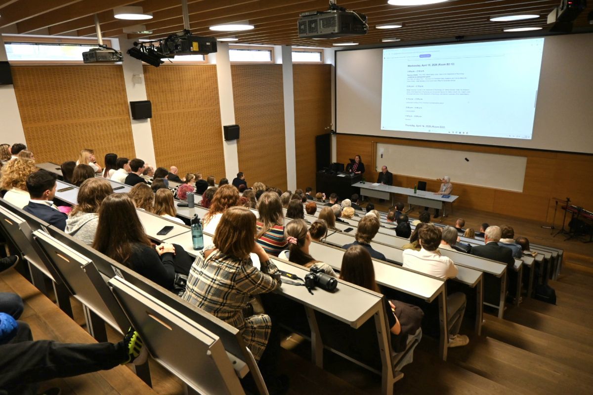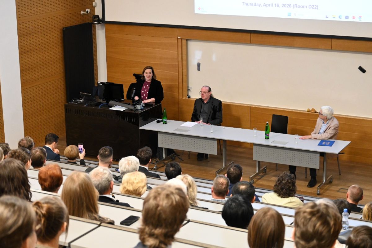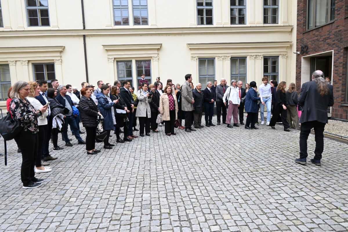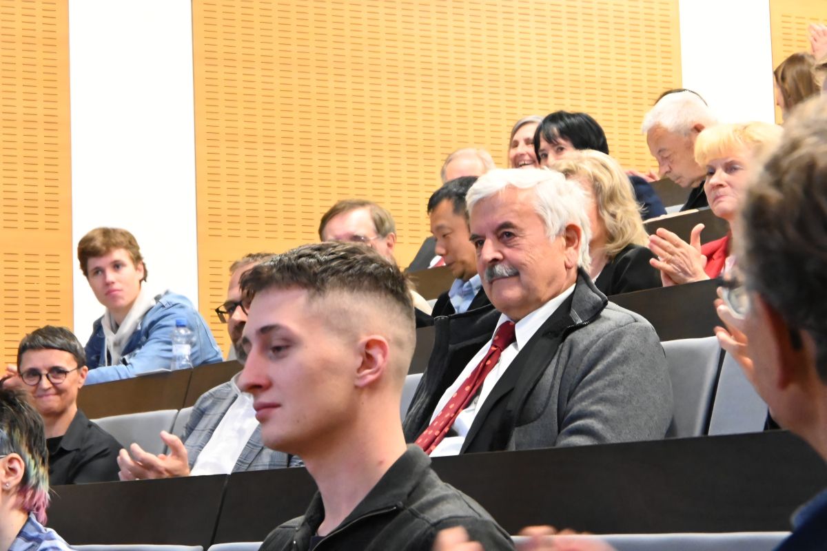 Zbrani so prisluhnili tudi predstavitvama zgodovine in načrtom za prihodnost oddelka. Posebej čustveno je bilo odkritje spominskega obeležja v zunanjem atriju Filozofske fakultete Masarykove univerze. S ponosom sta ga odkrila mlada pravnuka Mihajla Rostoharja. Iz Slovenije je namreč na dogodek prišlo več članov treh generacij družine Rostohar.