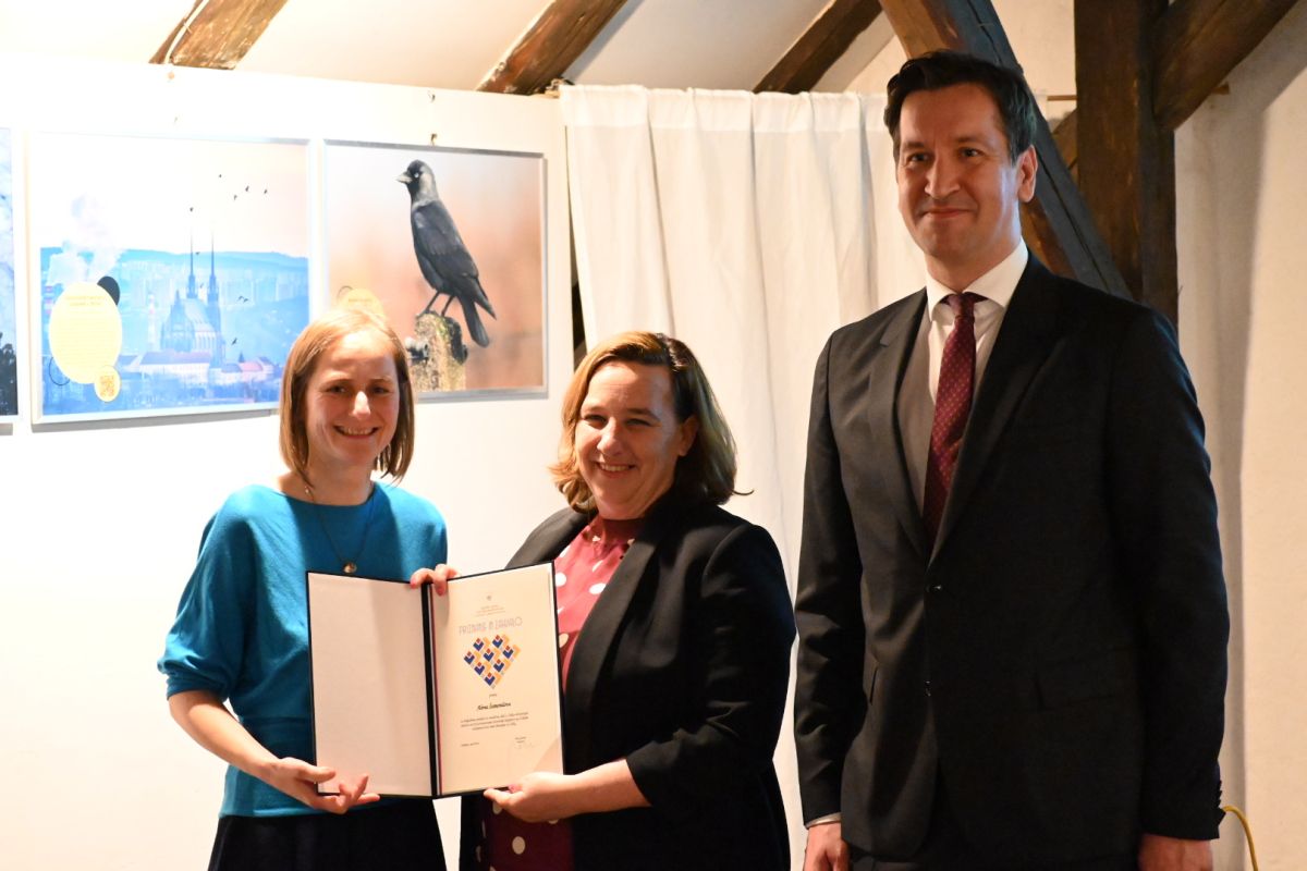 Prav tako je ob tej priložnosti državna sekretarka na večernem srečanju podelila priznanje in zahvalo predsednici Češko-slovenskega društva Aleni Šamonilovi za dolgoletno predano in nesebično delo v Češko-slovenskem društvu ter pri povezovanju slovenske skupnosti na Češkem in krepitvi vezi med Slovenijo in Češko.