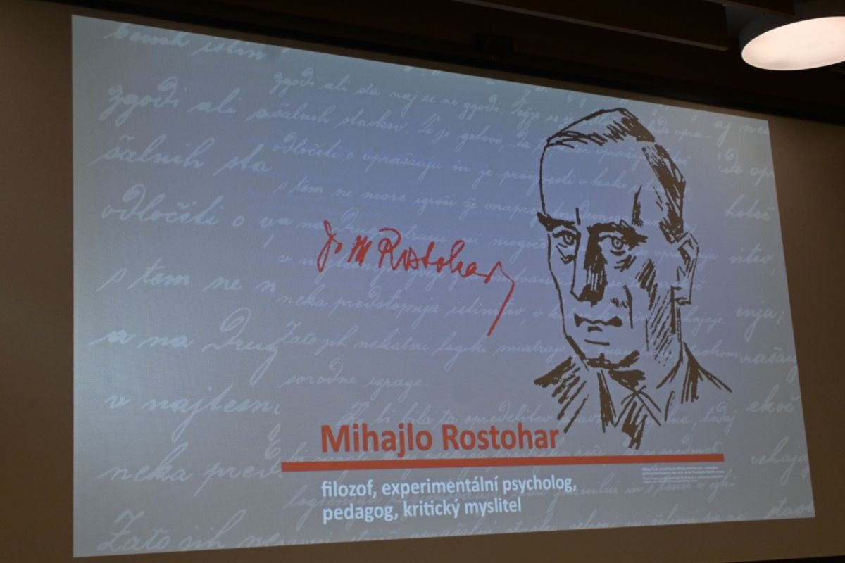 Na slovesnosti ob 100. obletnici Oddelka za psihologijo je zbrane poleg Vesne Humar v imenu rektorja univerze in dekanje Filozofske fakultete nagovoril tudi prorektor Masarykove univerze prof. PhDr. Jiři Hanuš. Ustanovitelja oddelka Rostoharja je predstavila Helena Rožman iz Mestnega muzeja Krško. Dogodek je moderiral predstojnik Oddelka za psihologijo na Fakulteti za socialne študije prof. PhDr. Zbyněk Vybíral.