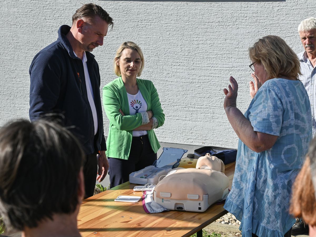 Vodja Centra za krepitev zdravja Krško (ZD Krško) Helena Žulič je demonstrirala uporabo defibrilatorja v praksi in zbranim predstavila temeljne postopke oživljanja. Ob tem je poudarila, da je ključno predvsem to, da si napravo upamo uporabiti in da poznamo njeno osnovno funkcijo.