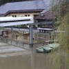 Krka ob večjem deževju poplavlja tudi v Žužemberku, tudi danes je tako. Na Loki je prestopila bregove in poplavila odbojkarska in nogometno igrišče, na drugi strani pa je narasla voda prekrila tudi spodnjo teraso Gostišča Koren. Krka ogroža tudi stanovanjsko hišo Grumovih.