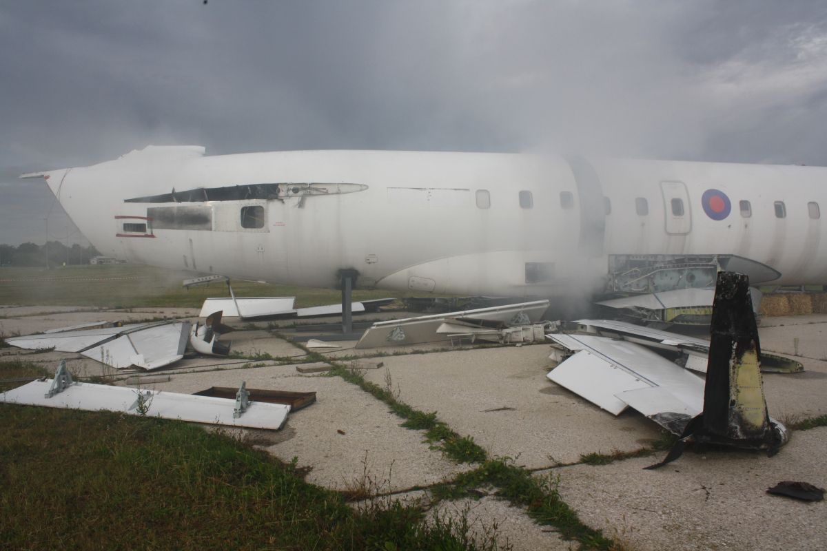 »Na letališču sta trčili vojaško srednje transportno letalo, ki je pristajalo, in civilno športno letalo, ki je vzletalo. Letali sta trčili s krili. Pri tem je transportno letalo zdrsnilo z vzletno-pristajalne steze, športno letalo pa se je zaletelo v skladišče minskoeksplozivnih sredstev.