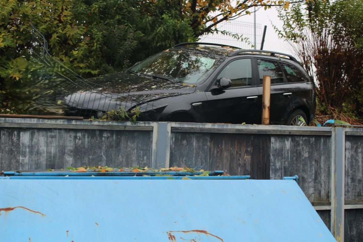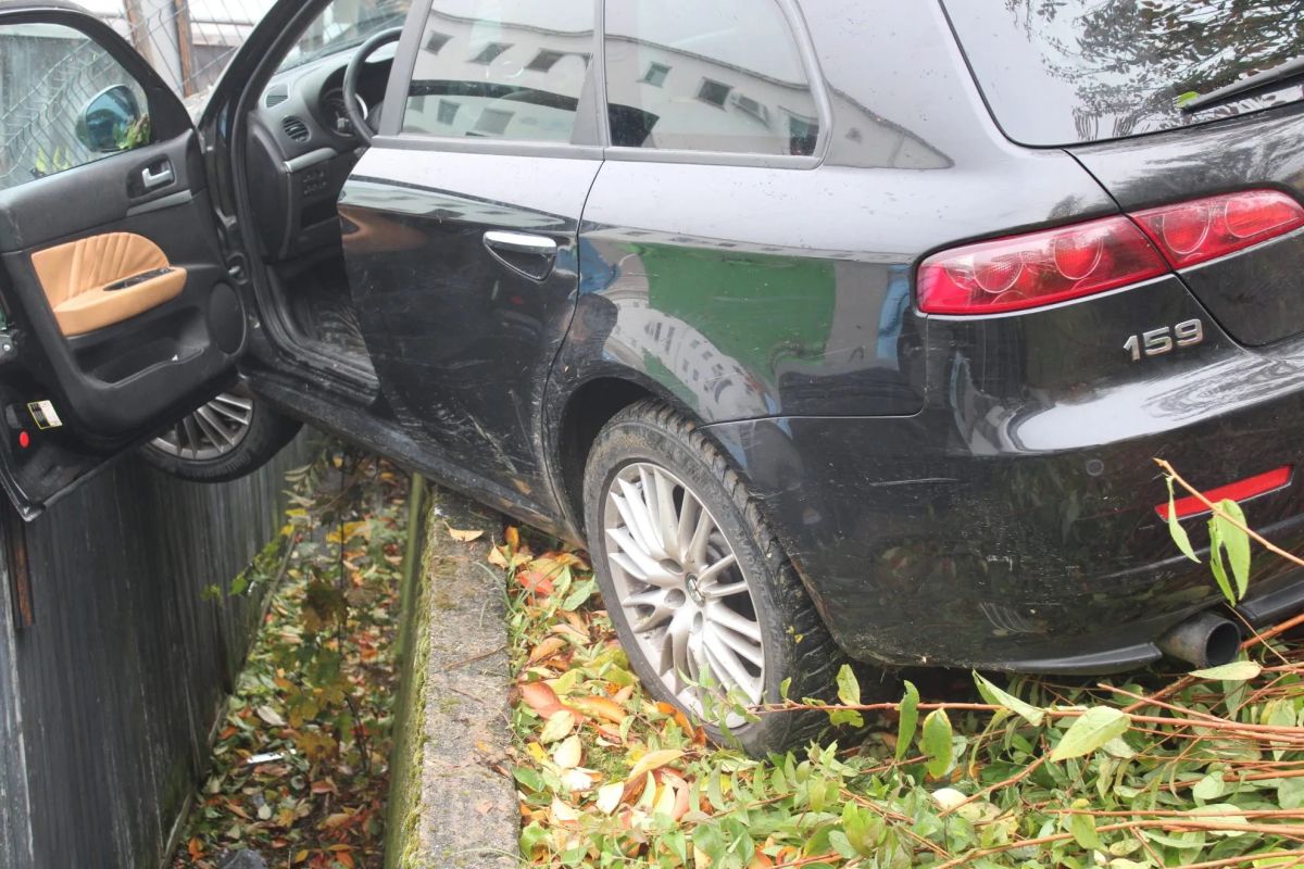 FOTO: Avto obvisel na škarpi, voznik ujet