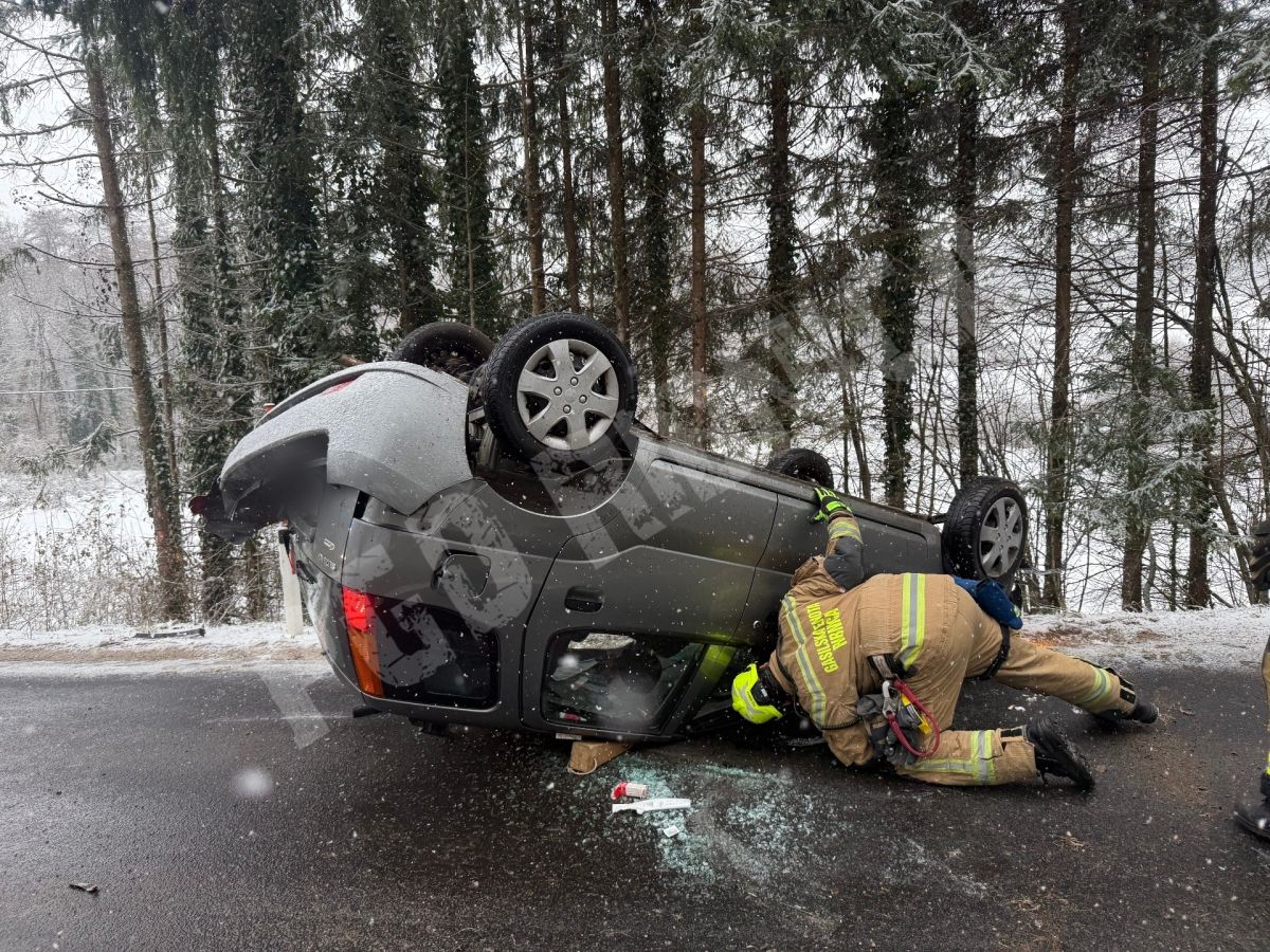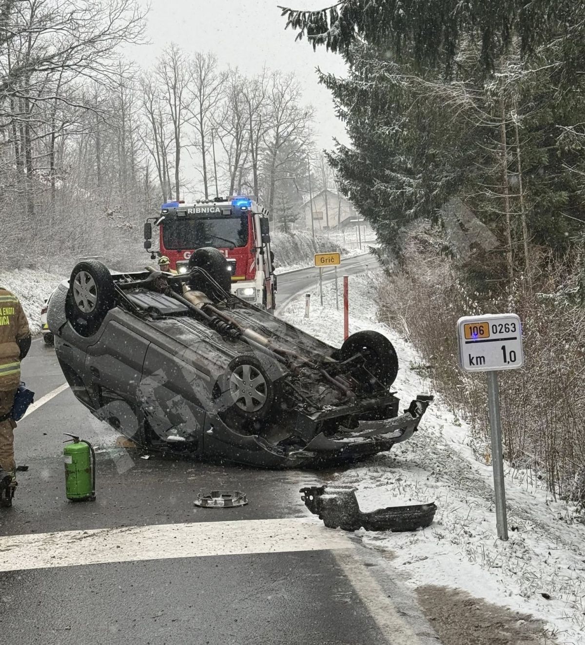 V soboto so posredovali v bližini bencinskega servisa, kjer je osebno vozilo iz neznanega razloga zdrsnilo s ceste, zapeljalo na brežino in obstalo na cestišču obrnjeno na streho. Pri tem se je lažje poškodovala ena oseba, katero so oskrbeli reševalci.