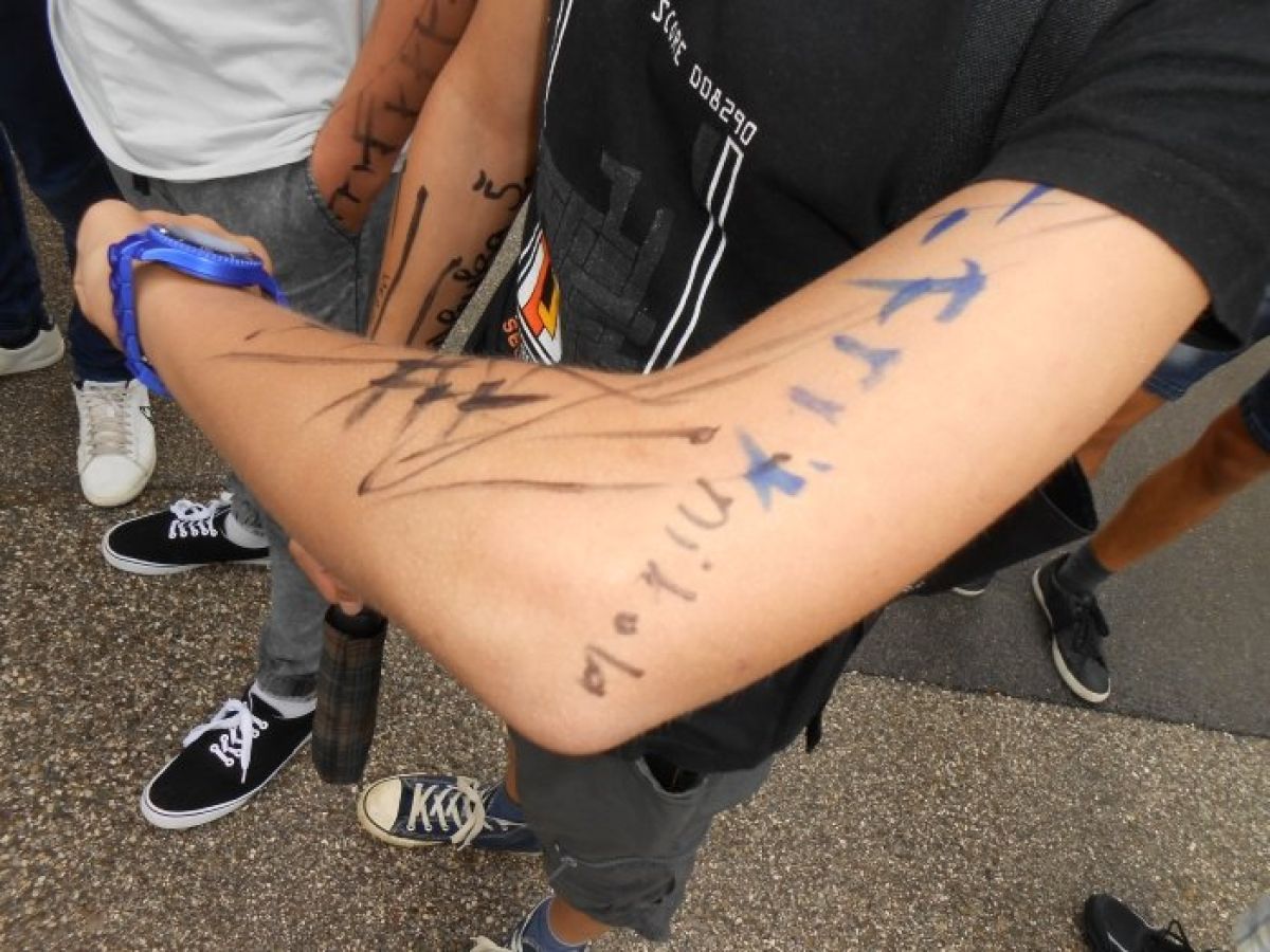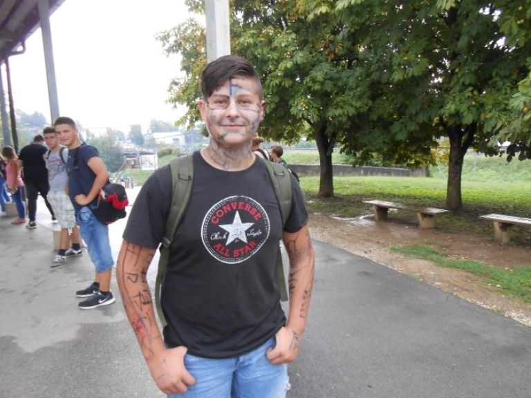 "Umetniško" so obdelali tudi Blaža, dijaka tehniške gimnazije. "To je za moj okus čisto lep sprejem. Naslednja leta bomo pa mi druge porisali," je odgovoril na vprašanje, če se mu zdi risanje z alkoholnimi flomastri primeren način za sprejem med dijake.