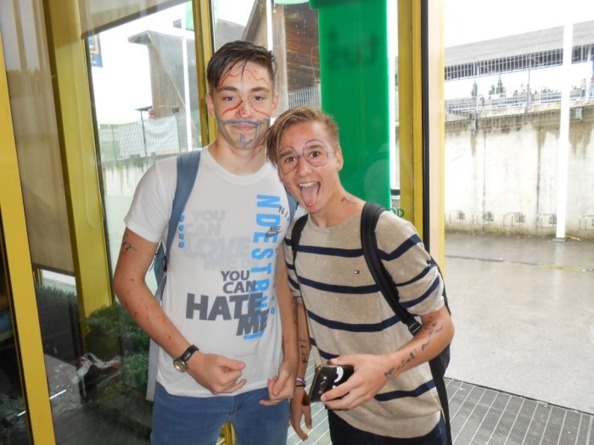 Pogovarjali smo se tudi z dijakoma tretjih letnikov Kristjanom in Aljažem, prvi obiskuje tehniško gimnazijo, drugi program računalniški tehnik. Bila sta brez flomastrov. "Midva sva letos prve letnike prikrajšala za fazaniranje. Malo je za to krivo vreme, malo pa zato, ker se nama zdi brez veze te mlade ljudi čečkati," sta rekla.