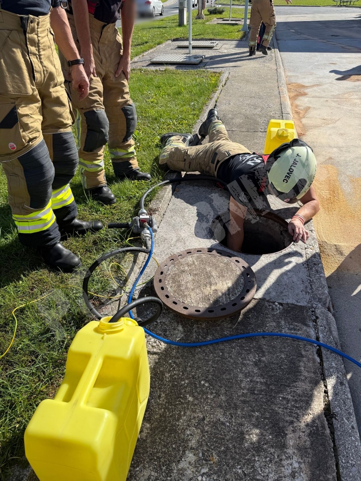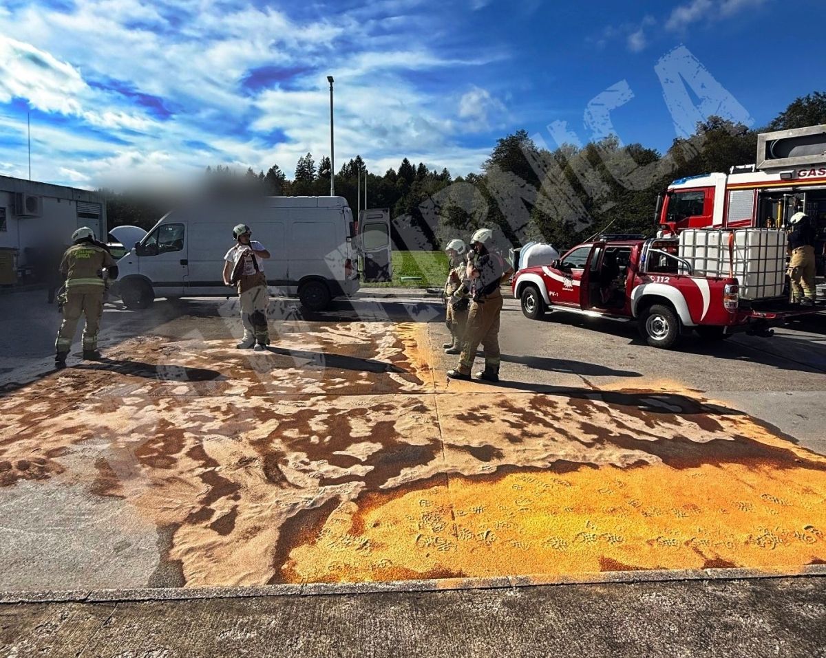Olje se je razlilo po zunanji površini servisa in delno steklo v odtočne jaške. Takoj po prihodu so gasilci zavarovali območje, ugotovili vrsto snovi ter preprečili nadaljnje iztekanje. Površino razlitja so posuli z absorpcijskim peskom in tako preprečili širjenje olja proti odtočnim kanalom.