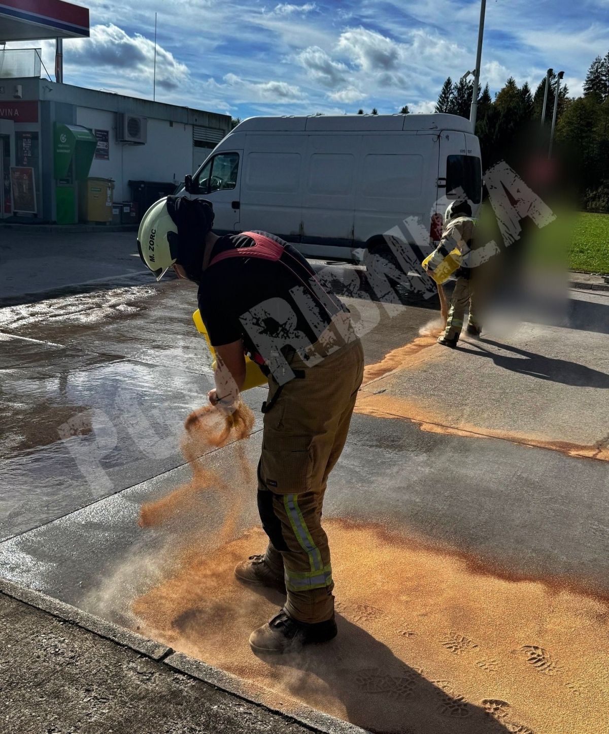 Posredovali so na bencinskem servisu Rašica, kjer je zaradi nepazljivosti pri pretakanju v mobilno cisterno na dvorišče izteklo približno 300 litrov kurilnega olja.