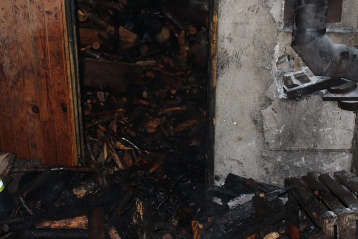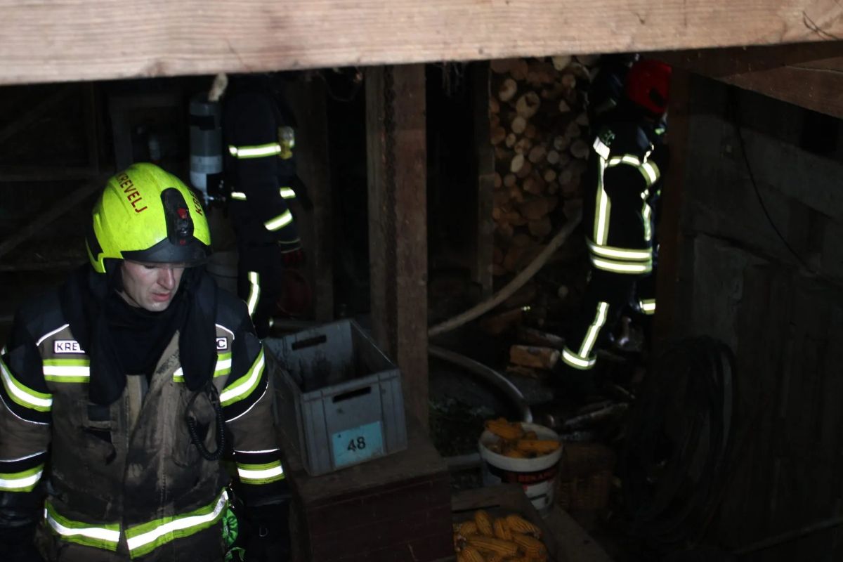 FOTO: Ob kratkem stiku na elektro omarici dim, zagorela pa skladovnica drv