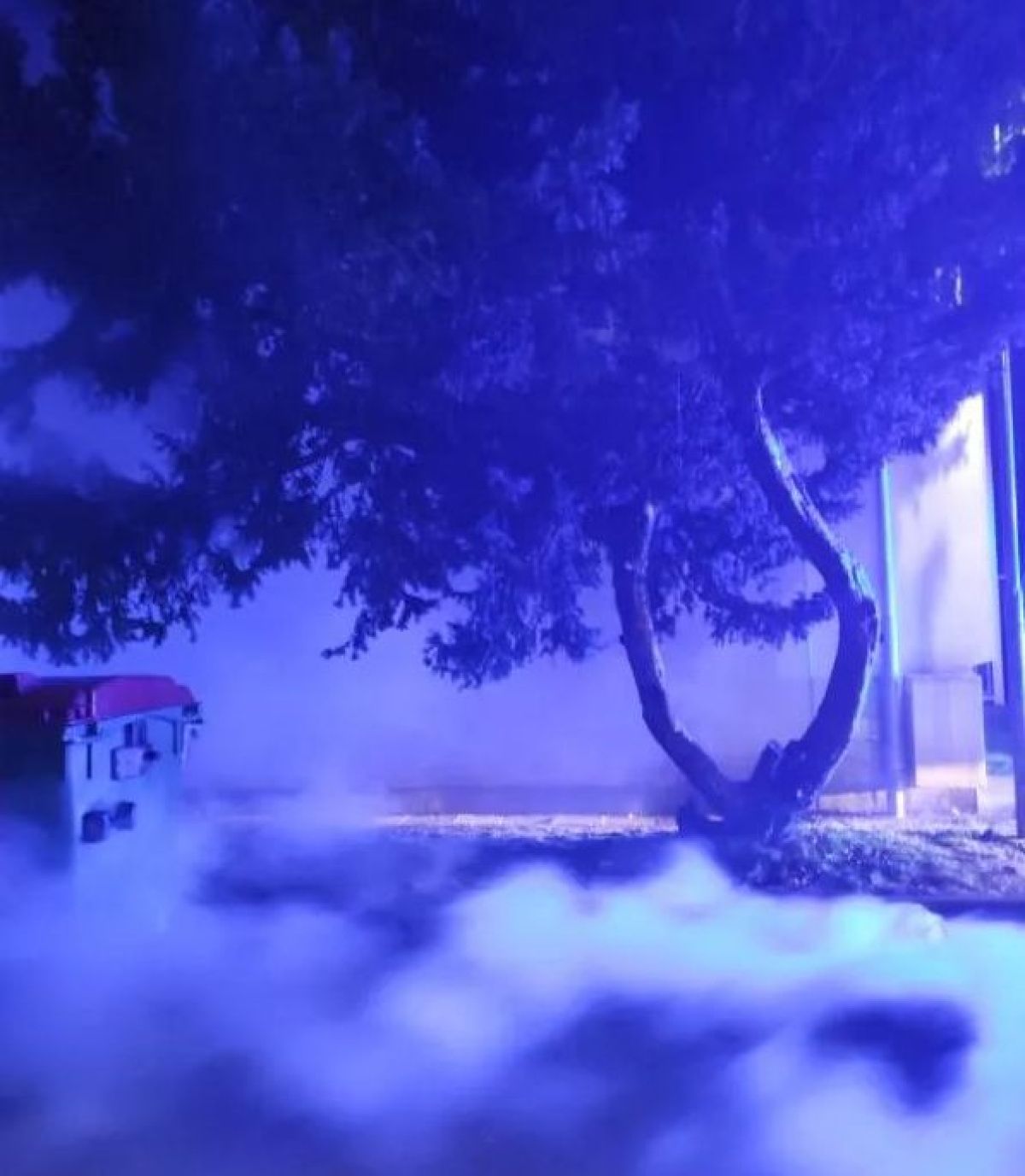 Nekaj kasneje istega dne, okoli pol polnoči, pa so krške gasilce obvestili, da je na strehi stanovanjske hiše maček, ki ne more dol. Na kraj so izvozili z dvema gasilcema tehničnima reševalcema in enim vozilom. Mačko so s pomočjo lestve rešili in predali lastnici.