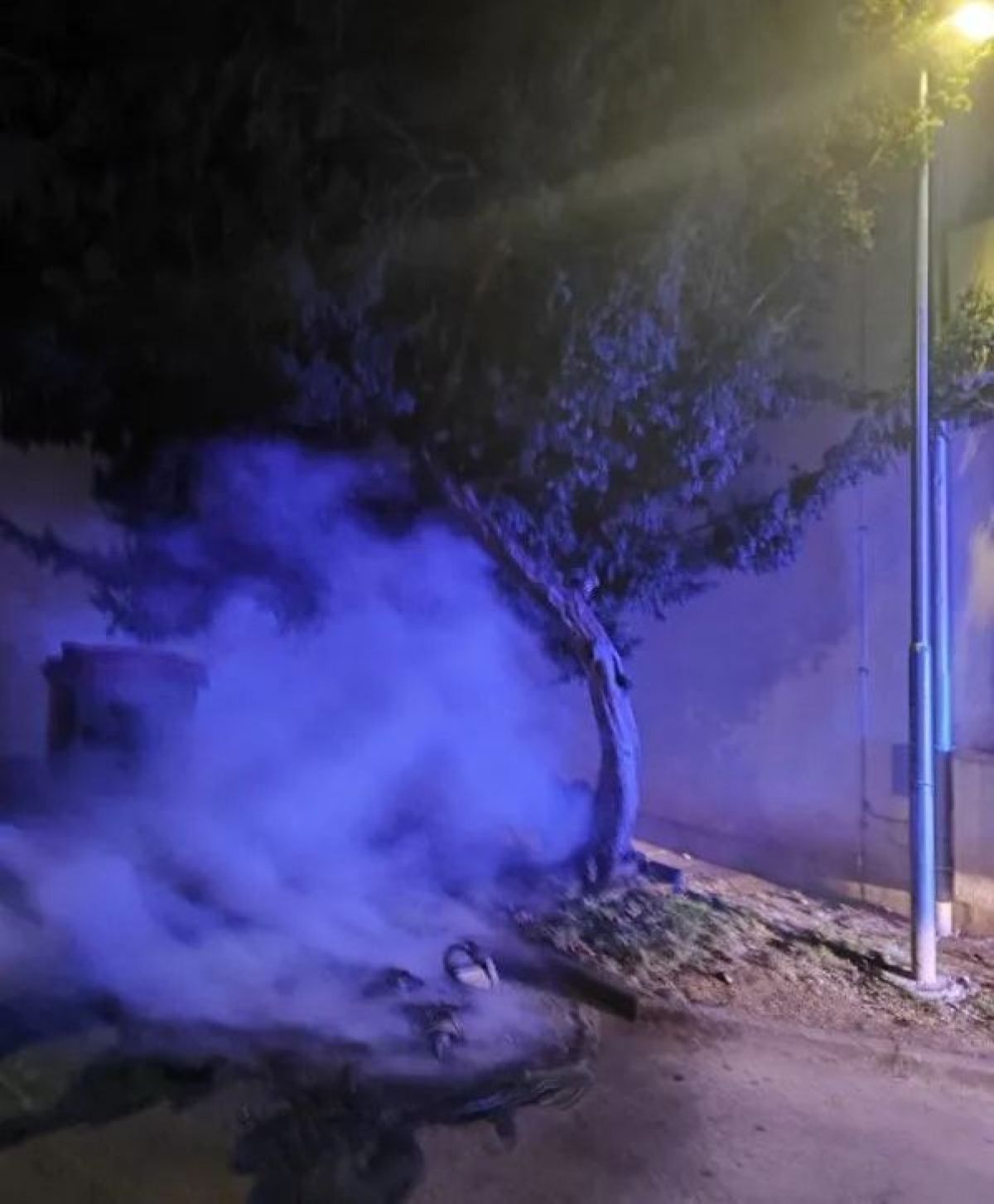 FOTO: Pri šoli pogorel zabojnik, gasilci pomagali tudi mačku s strehe