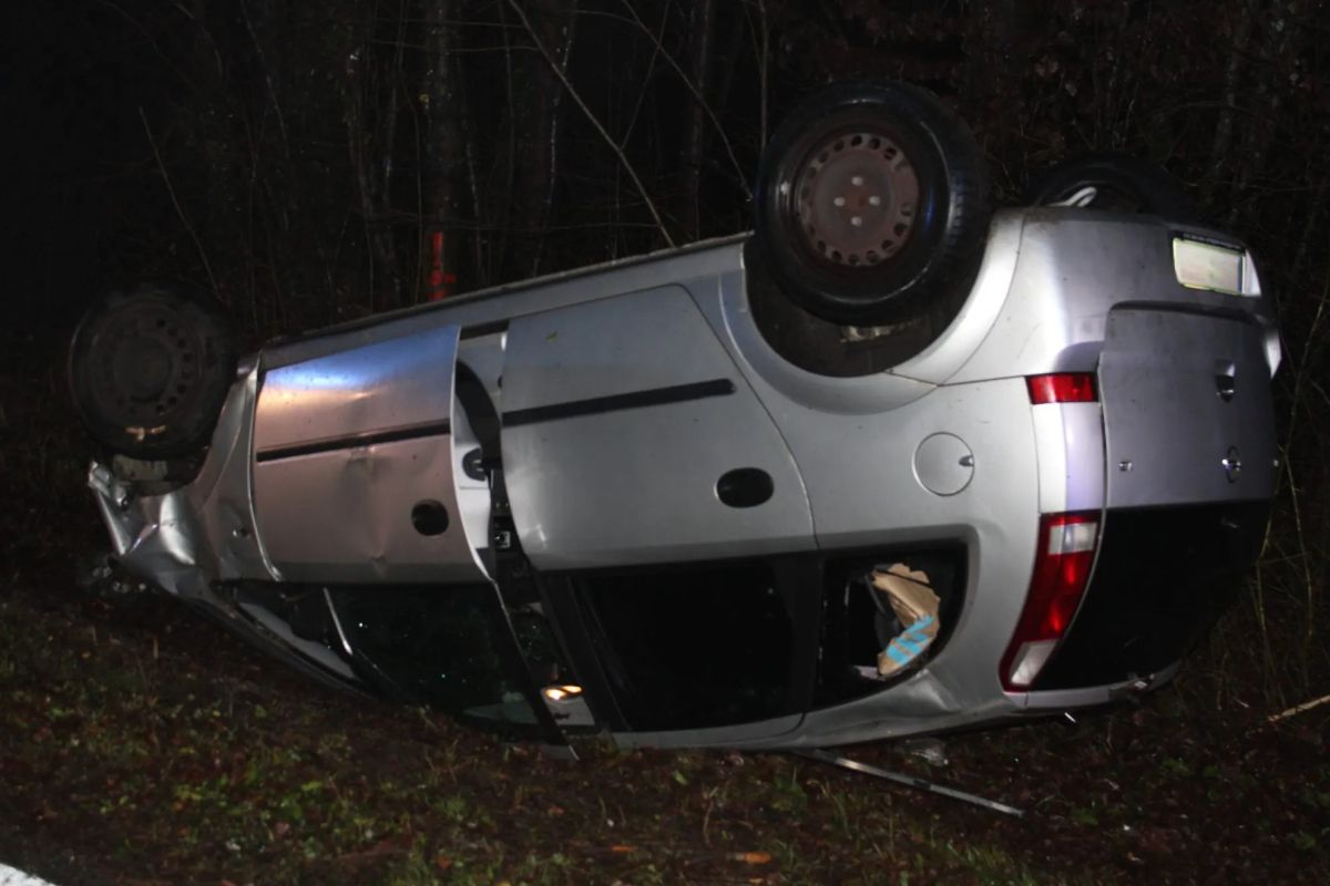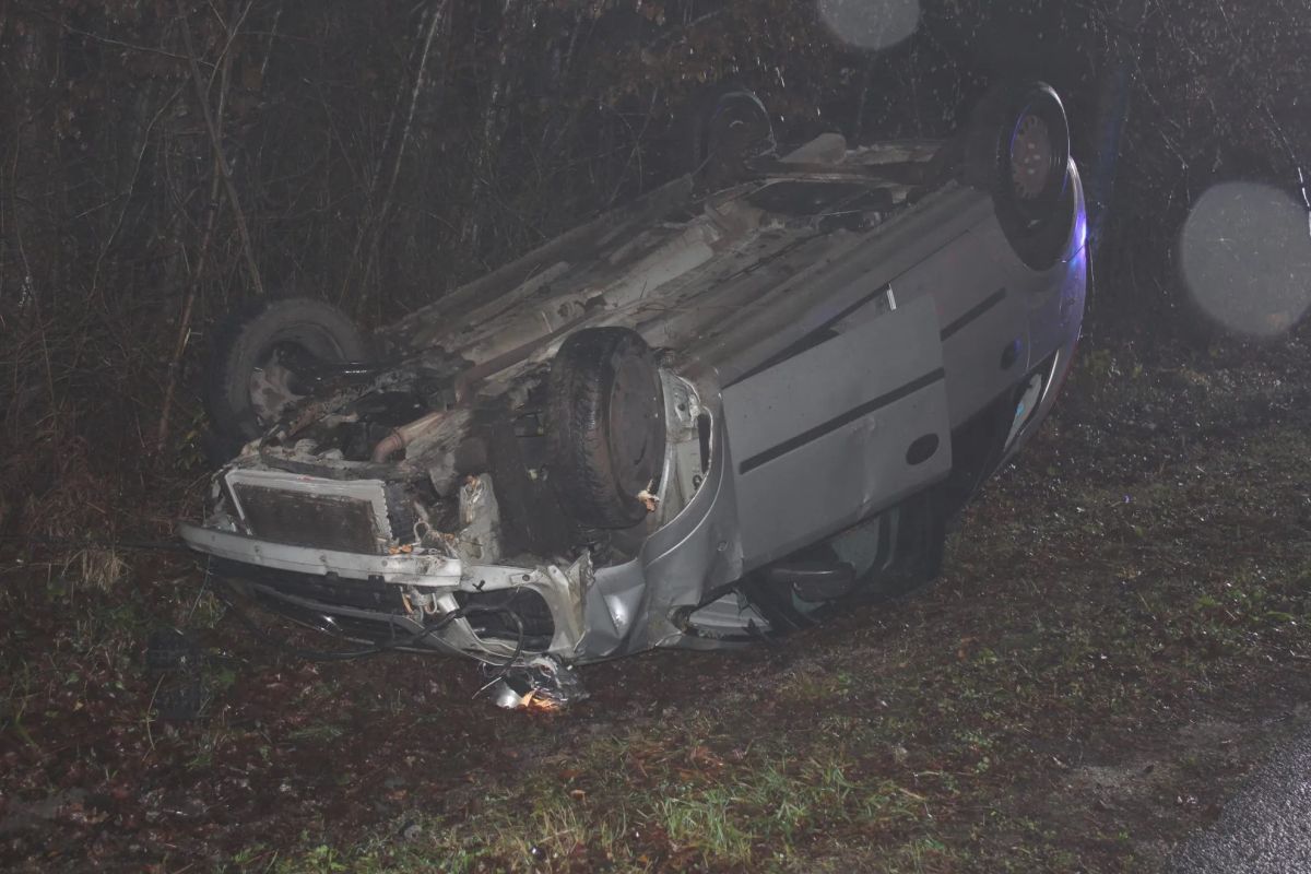 FOTO: Davi avto na strehi, poškodovani se je rešil sam