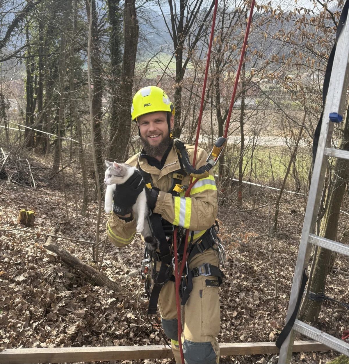 V PGE Krško so včeraj uporabili vrvno tehniko - reševali pa so mačka.