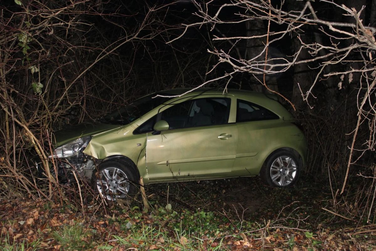 Zaradi spolzke ceste naravnost v gozd