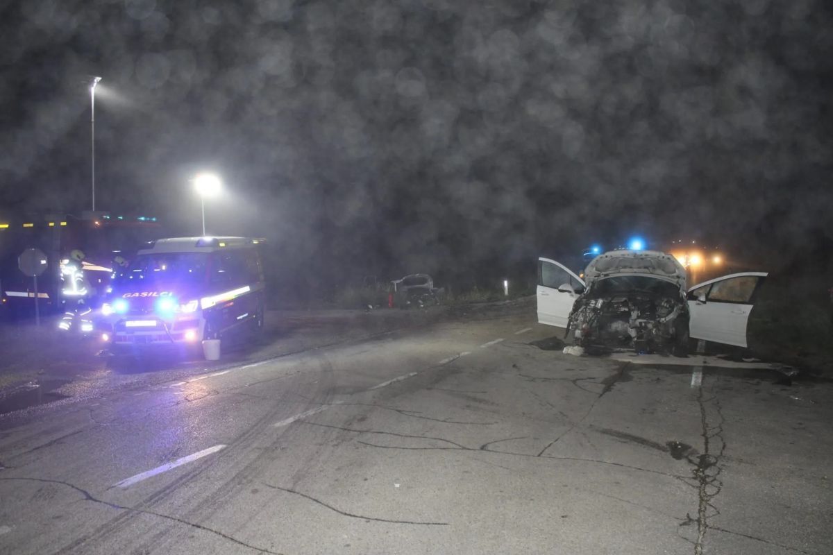 Ena oseba je bila ukleščena v vozilu, iz zvite pločevine so jo potegnili gasilci.