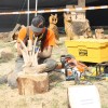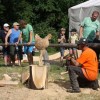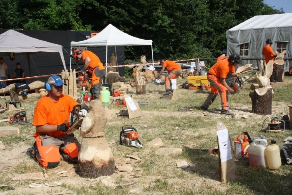 Na Gradišču nad Stično se je včeraj začel tretji festival kiparjev z motorni žago, na katerem letos sodeluje 15 Slovencev in trije Hrvati. Gre za tridnevno druženje kiparjev, ki namesto dlet in drugega finega orodja pri delu uporabljajo kar posebne motorne žage. Danes popoldne so se udeleženci pomerili v hitrostnem kiparjenju (štelo je za državno prvenstvo), ko so imeli za izdelek vsega eno uro časa. Med njimi je bila tudi ena dama, ki je zelo spretno vihtela žago, to je bila Helena Rismondo iz Smednika, ki se je tekmovanja udeležila že lani.