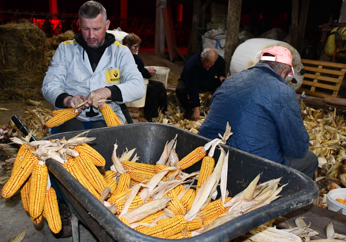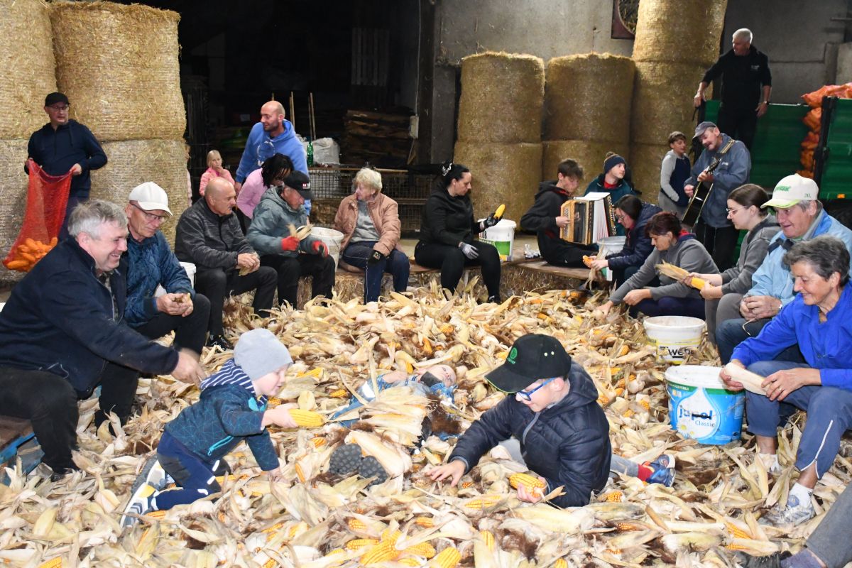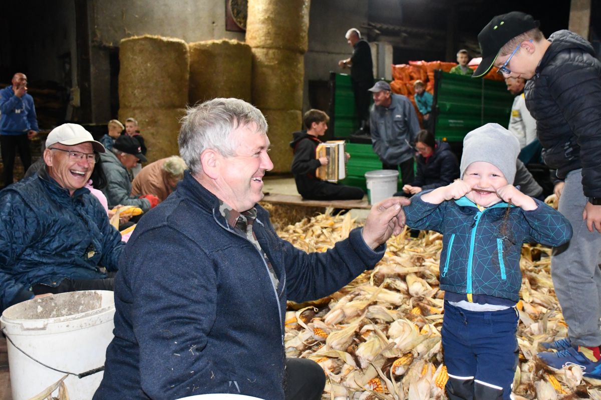 Ličkanje koruze kot nekoč na kmetiji Vidic v Hruševcu