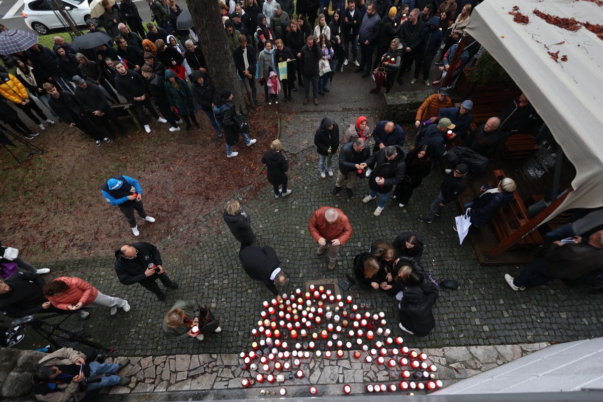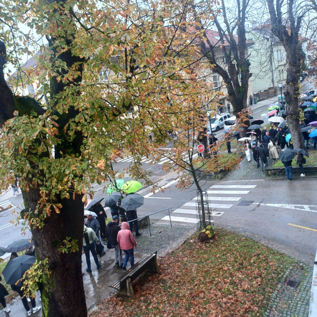 Vzdušje je bilo mračno in žalostno, ljudje vidno pretreseni. Mnogi so prišli z družinami, čeprav je močno deževalo.