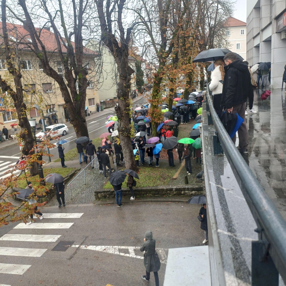 Ljudje se zbirajo v drevoredu ob Rozmanovi in na ploščadi na Novem trgu. Gneča je tudi povsod okrog Novega trga, pristop z avtom v center mesta je otežen.
