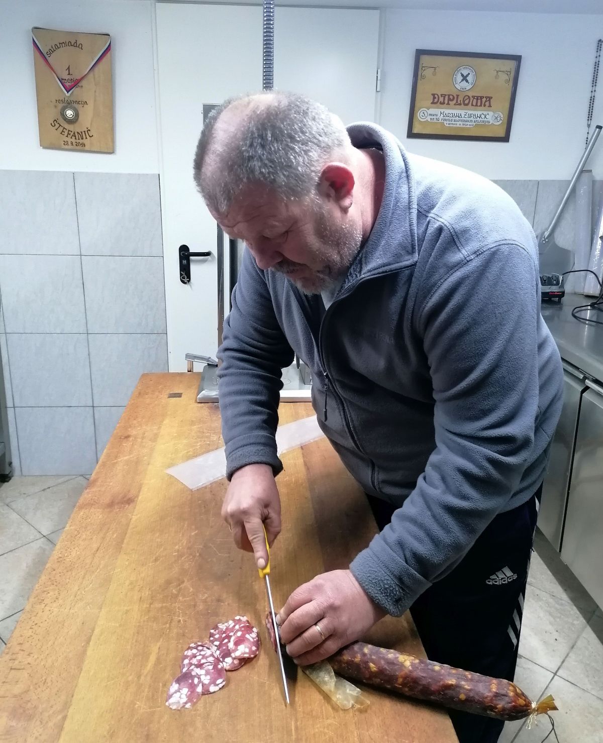 Božo Zupančič je s krajo mesnin oškodovan za okrog pet tisoč evrov, saj je šlo že za gotove izdelke. Kje pa je še vse znanje, delo, trud in veselje, ki ga je s svojimi bližnjimi vložil v vse salame, klobase krače, pršute… , skupaj z družino in sosedom!