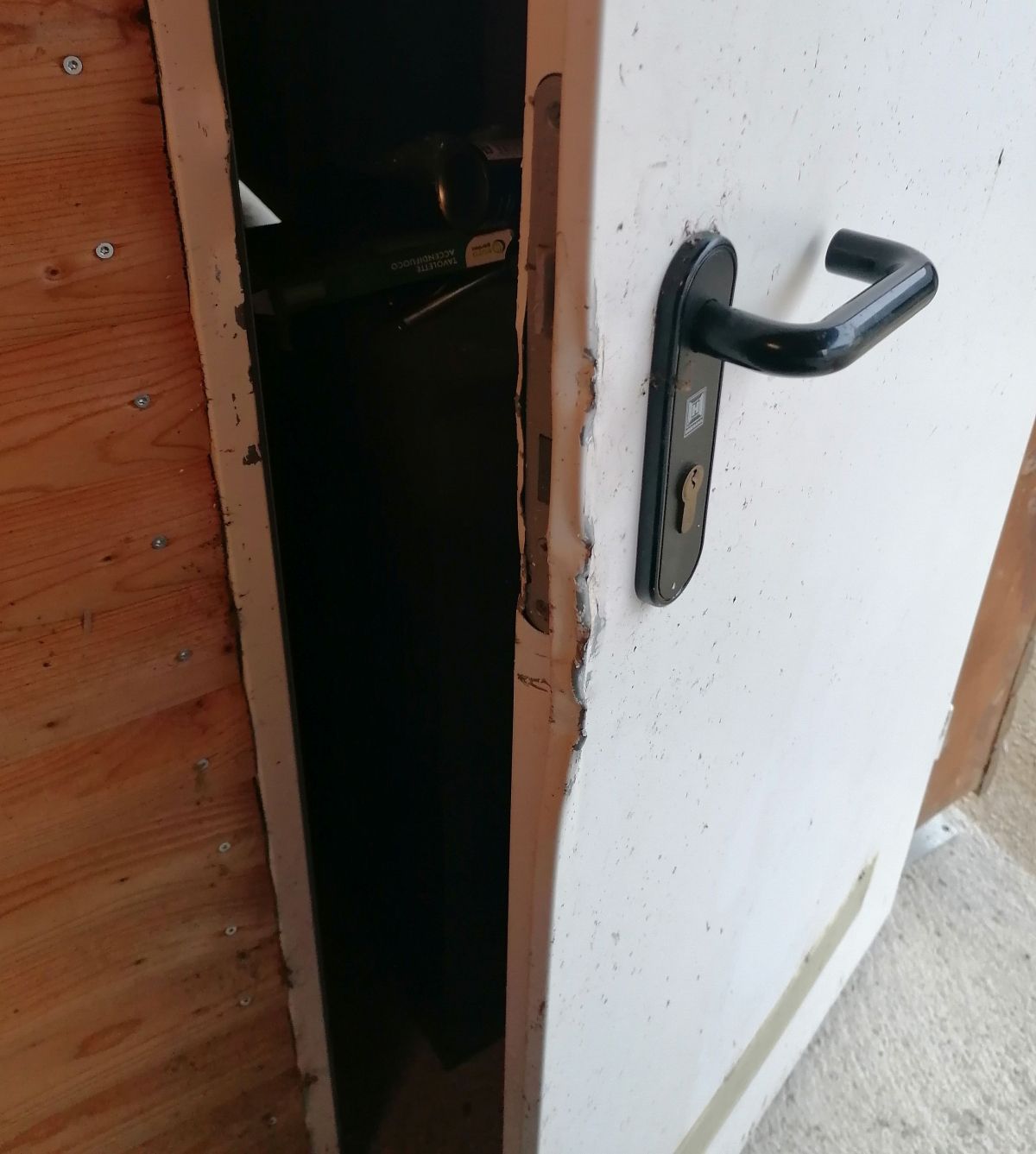 Neznanci so odnesli 12 velikih zabojnikov mesa: 160 navadnih salam, 30 tekmovalnih, en zaboj želodčkov, pa zaboj suhih klobas, dve banji klobas za kuhanje, dve banji tirolk, eno s šunkaricami, pa pršute, velikonočne šunke, krače… Izginilo je celo devet velikih veder ocvirkov, le dve posodi masti so pustili,« pripoveduje Božo, in pokaže, da so tatovi v zaklenjen objekt vlomili s pomočjo železne palice, zvili so vrata pri ključavnici.