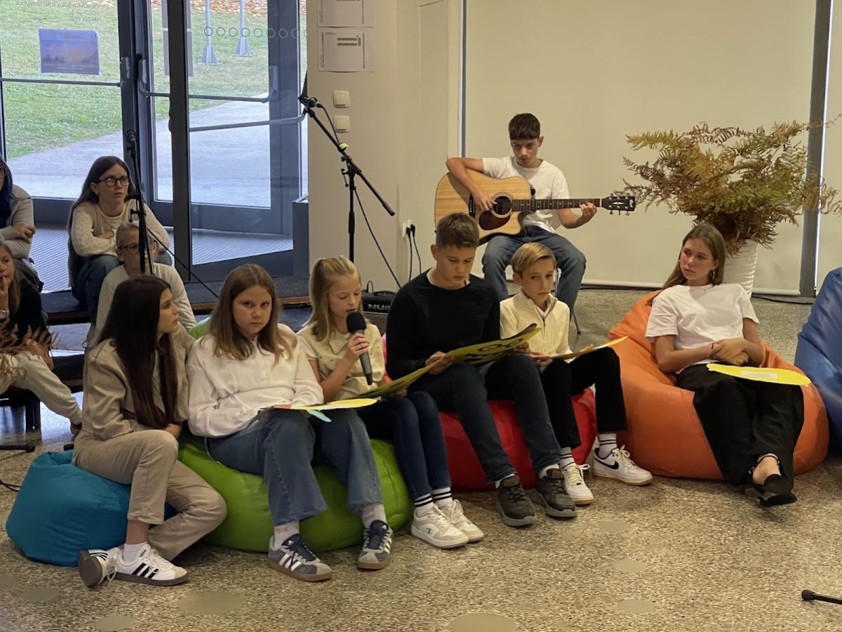 Izhodišče za letošnje pesniško ustvarjanje je bila pesem Toneta Pavčka Srečni otroci.