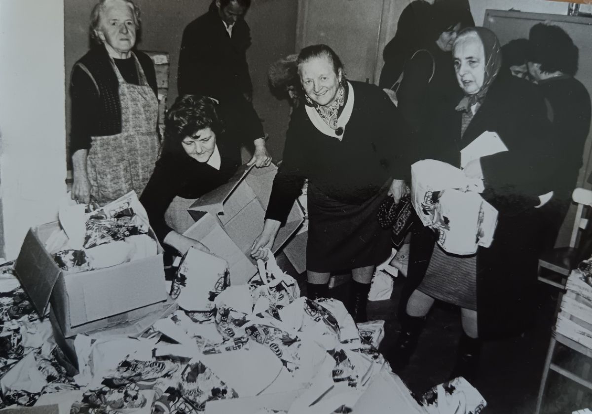 Pričujoča fotografija je iz leta 1981, ko so v novomeški občini z novoletnimi darili razveselili več kot 4.000 občanov, starih nad 70 let. Kot smo takrat zapisali v Dolenjskem listu, sta denar za obdaritev prispevala skupnost socialnega skrbstva in občinski odbor RKS Novo mesto, nekaj pa so primaknile krajevne organizacije Rdečega križa in nekatere družbenopolitične organizacije občine. Pri pakiranju in raznašanju daril so sodelovali aktivisti Rdečega križa (na fotografiji).