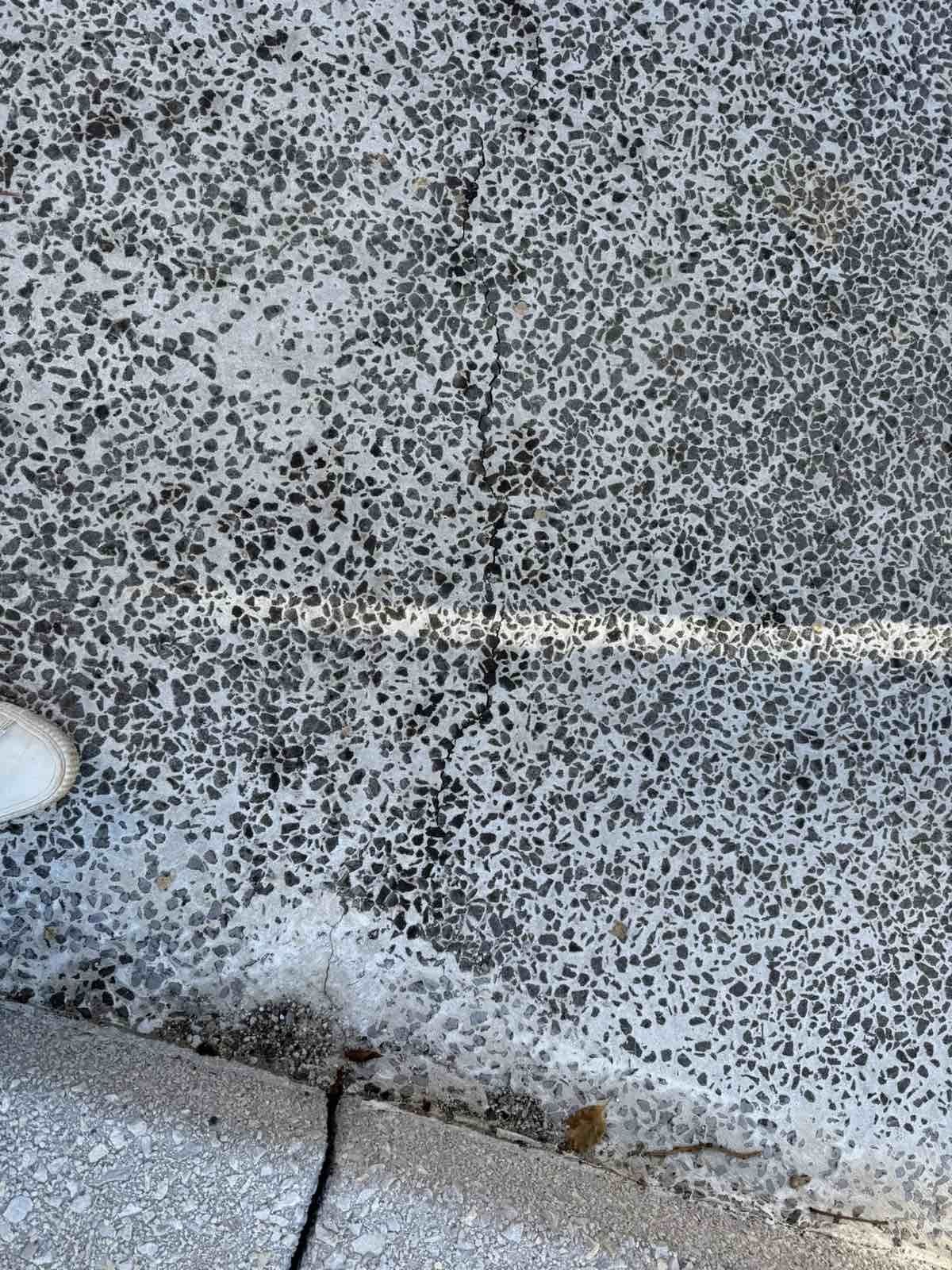 Bel betonski robnik, ki ločuje vozni pas od površine za pešce, je poškodovan, Direkcija RS za infrastrukturo je že naročila zamenjavo.