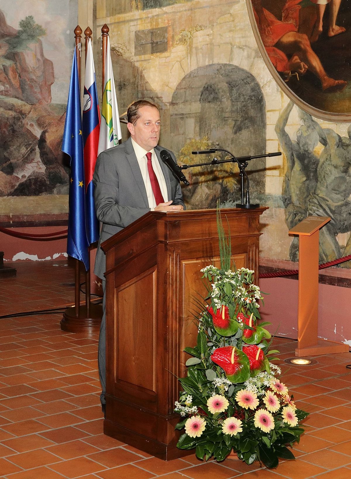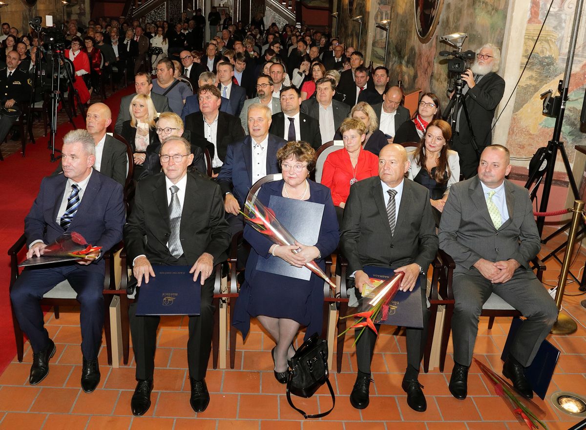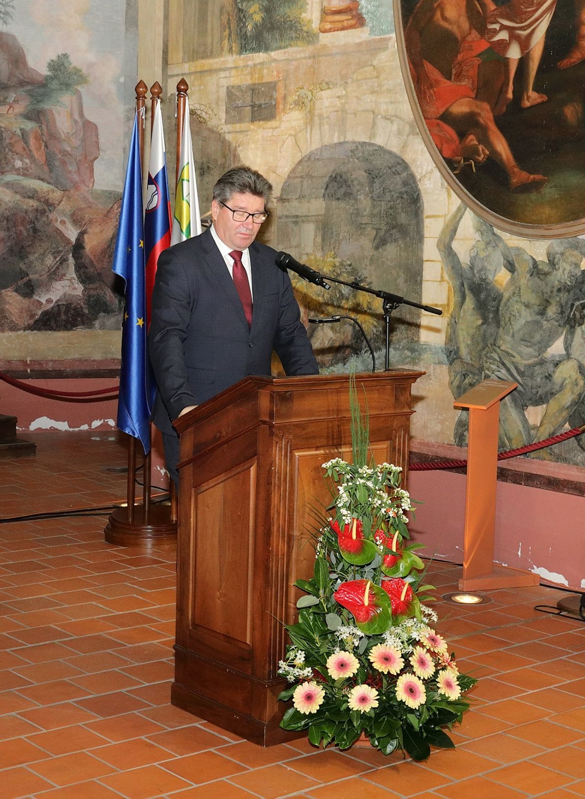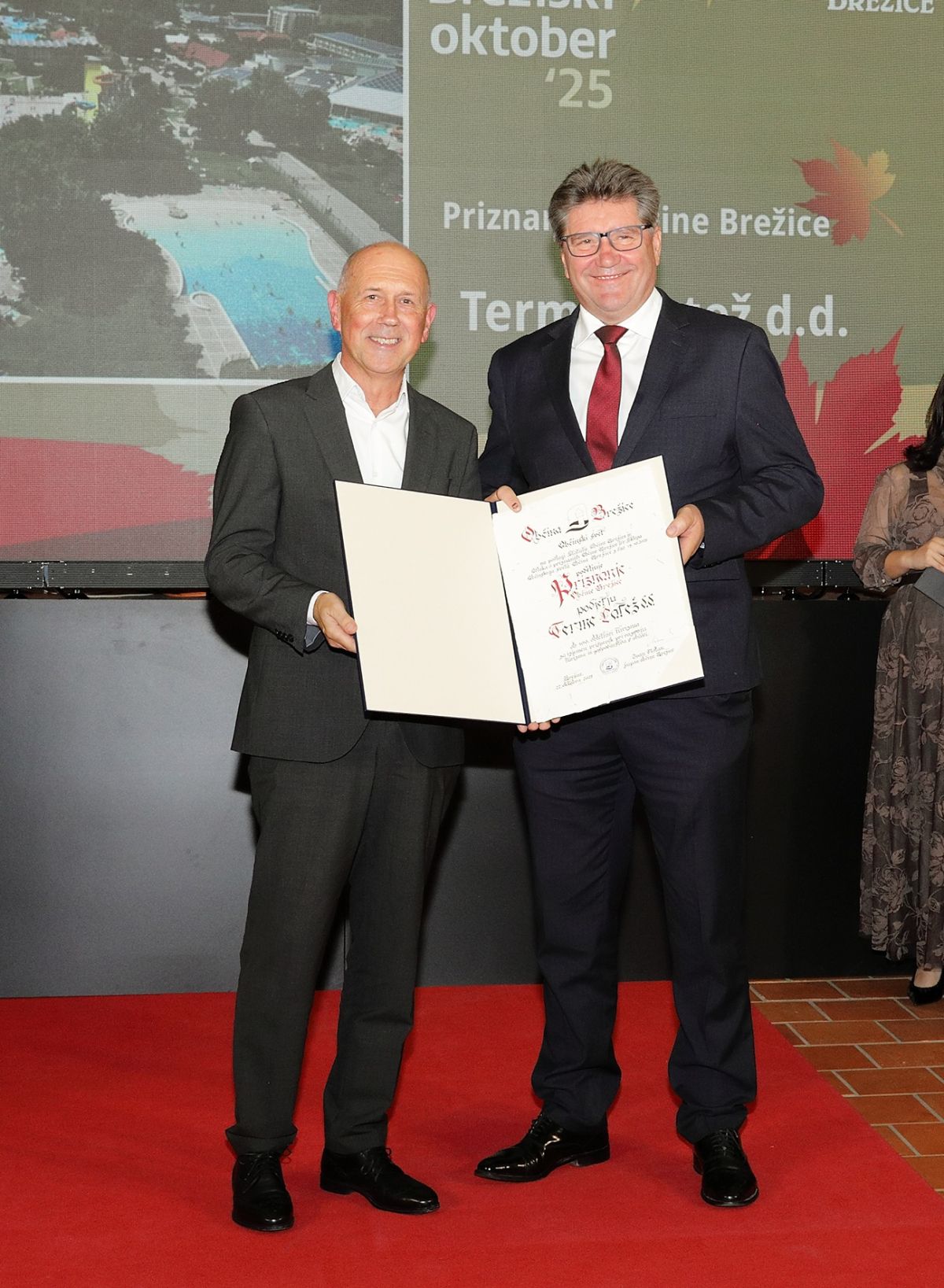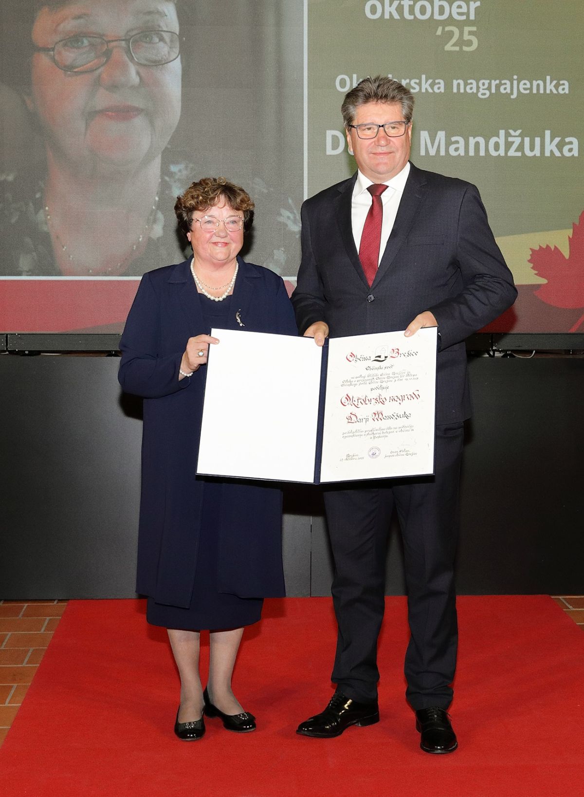 Župan Ivan Molan je izročil listine prejemnikom naziva častni občan, oktobrskih nagrad in priznanj ter plakete. Občina Brežice ima tako dva nova častna občana, to sta Borut Mokrovič in Andrej Vizjak.
