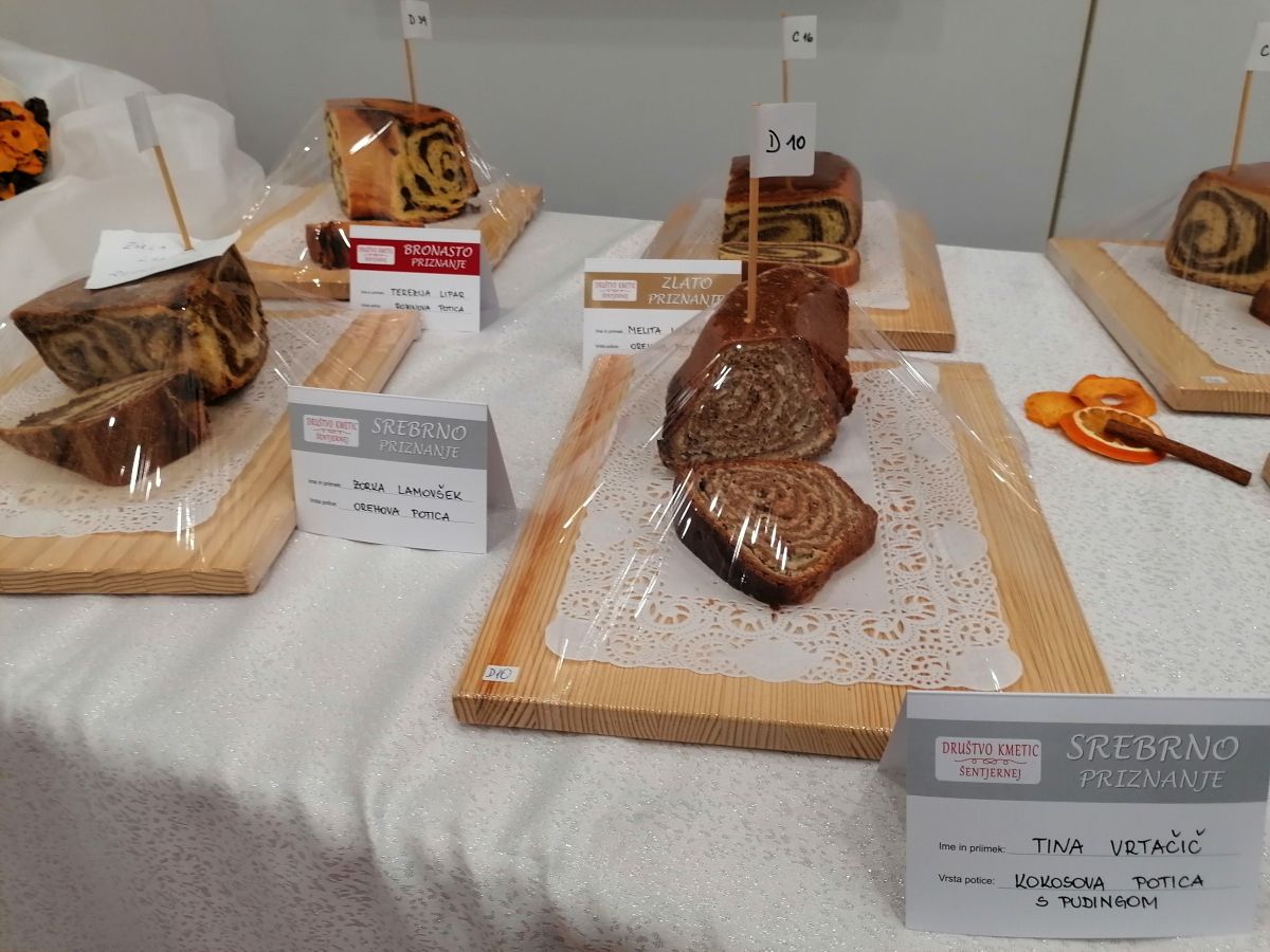 Spekle so jih tri članice Društva kmetic Šentjernej: Mihaela Blatnik in Helena Jakše kokosovo potico ter Doroteja Pirkovič makovo potico z ribezom; Mari Jakše iz Društva kmečkih žena Novo mesto orehovo potico, ter Tjaša Judež iz okolice Litije kokosovo potico.