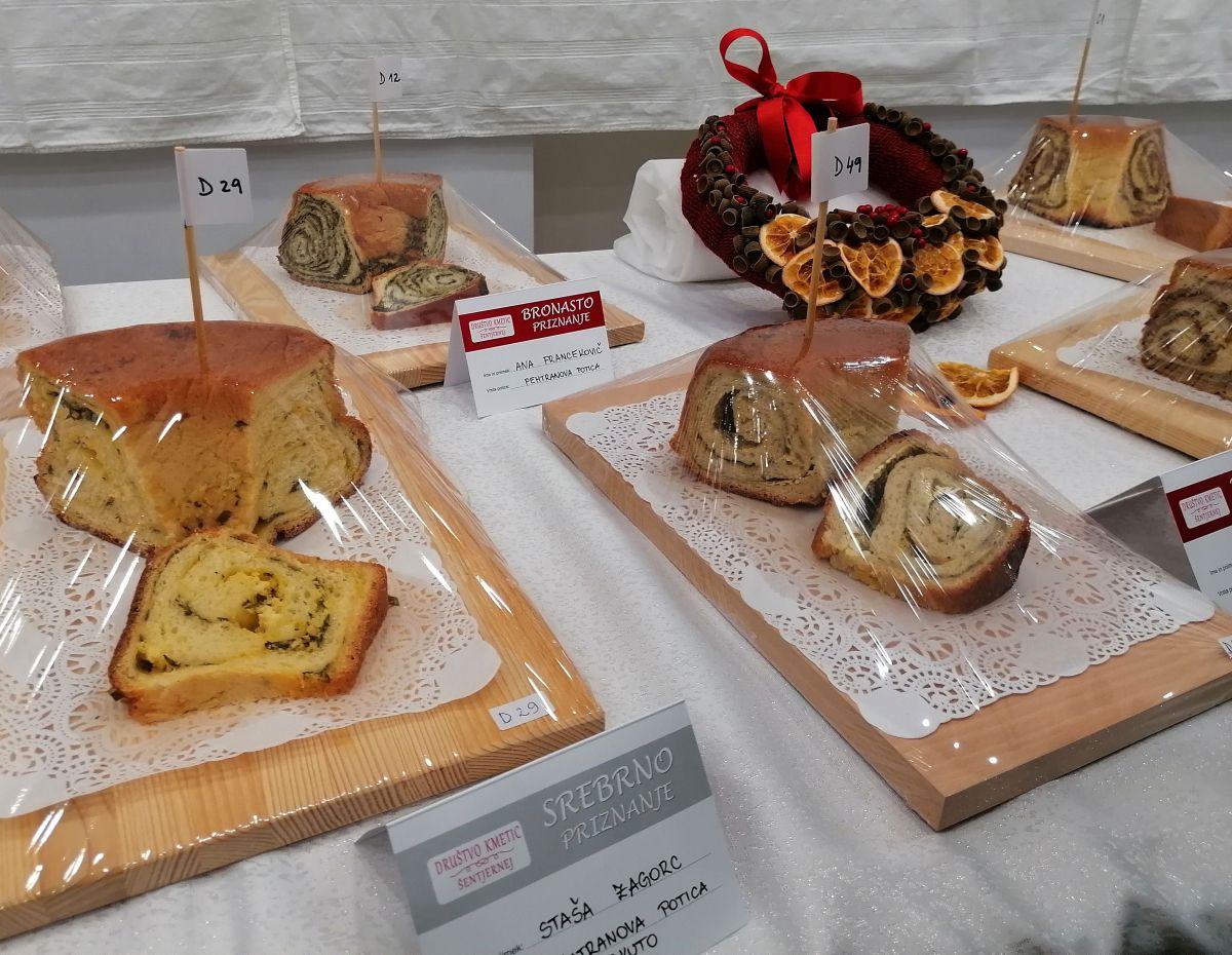 Pet je bilo slanih (ocvirkova, velikonočna, špehovka), 27 orehovih ter kar 54 ostalih: korenčkova, čokoladna, kokosova, kostanjeva, lešnikova, makova, pehtranova, s suhimi hruškami, rozinova, rožičeva, skutna.