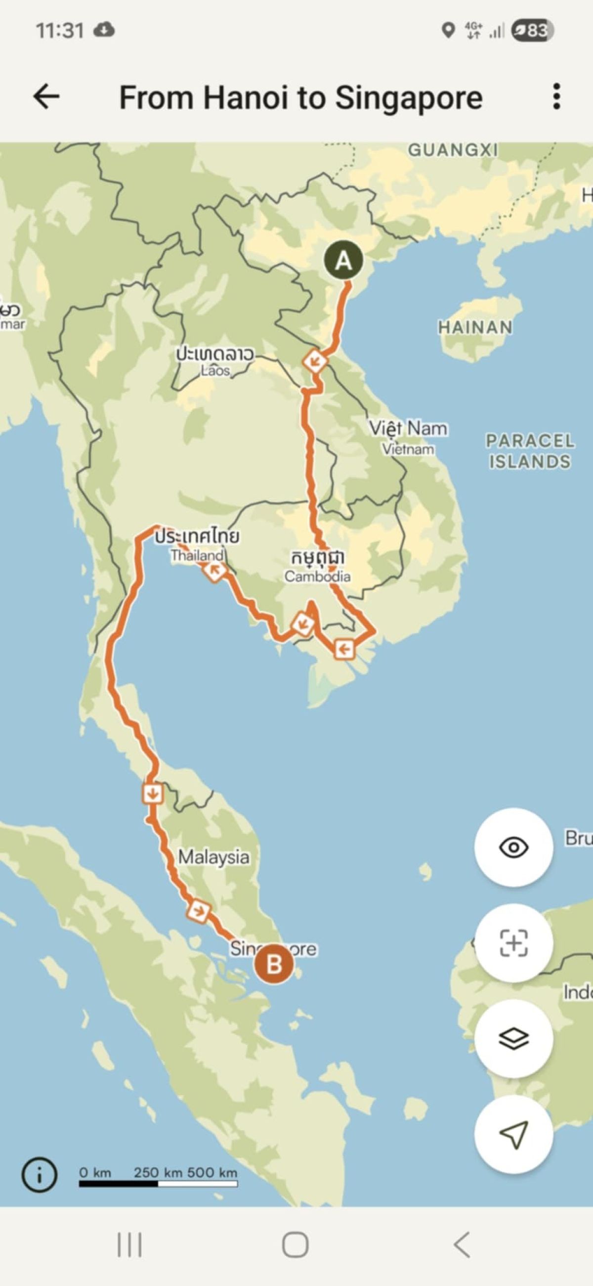 Sledi prehod v Kambodžo – deželo skrivnostnih templjev, rdečih cest in največjih nasmehov na svetu. Tu se mi stvari nekoliko zapletejo, saj je zaradi konfliktov s Tajsko večina mejnih prehodov zaprtih. Pot bom moral preusmeriti, tako da bom najprej kolesaril ob vzhodni obali do juga Vietnama, nato pa v Kambodžo. Pot se mi bo malo podaljšala, zato sem res na tesnem s časom – 22. decembra imam namreč let iz Singapura. Ampak Silvek se ne bo kar predal; malo bom povišal tempo.
