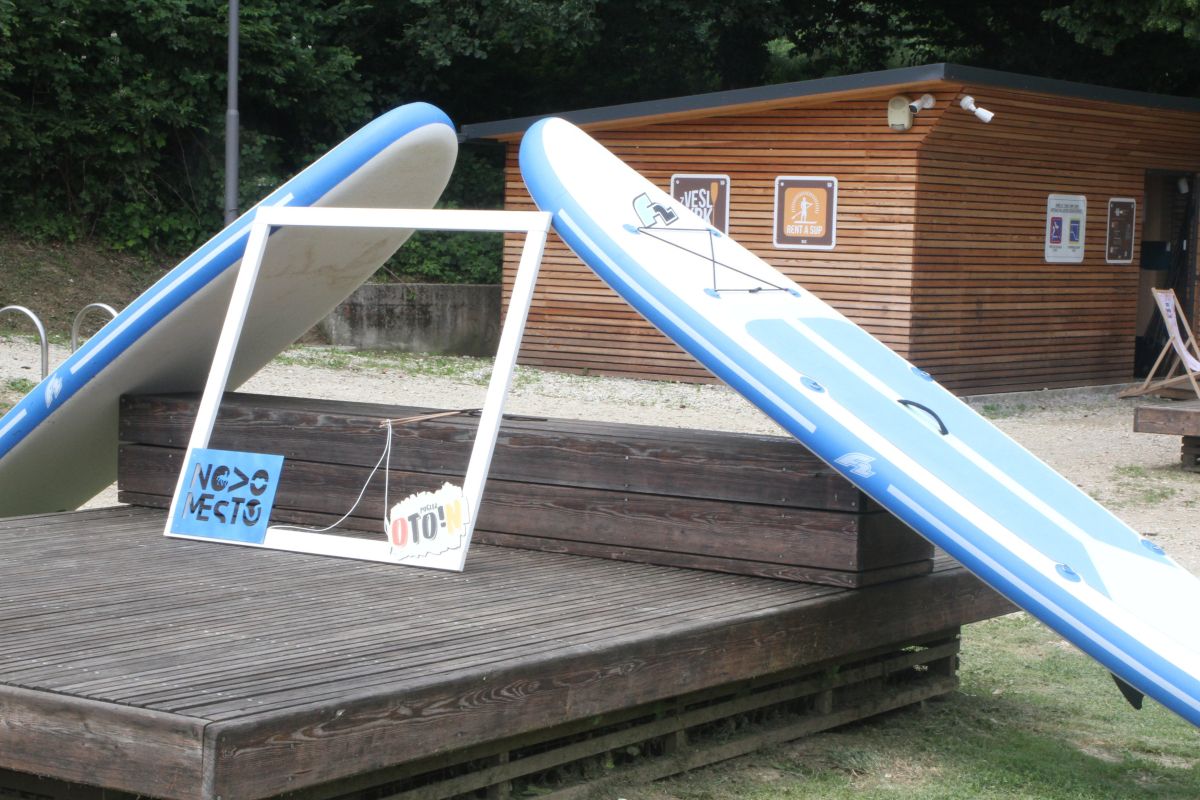Na današnji novinarski konferenci so sodelavci Zavoda Novo mesto poleg svojega programa za ta konec tedna predstavili tudi projekt Z vesli, za katerega so poleg treh lesenih čolnov, ki so bili na novomeški plaži zasidrani že prej, kupili še pet Elanovih plastičnih kanujev in več supov. Na plaži bodo pripravljali tudi delavnice za otroke, dejavnosti na in v Krki pa bo nadziral tudi reševalec iz vode.