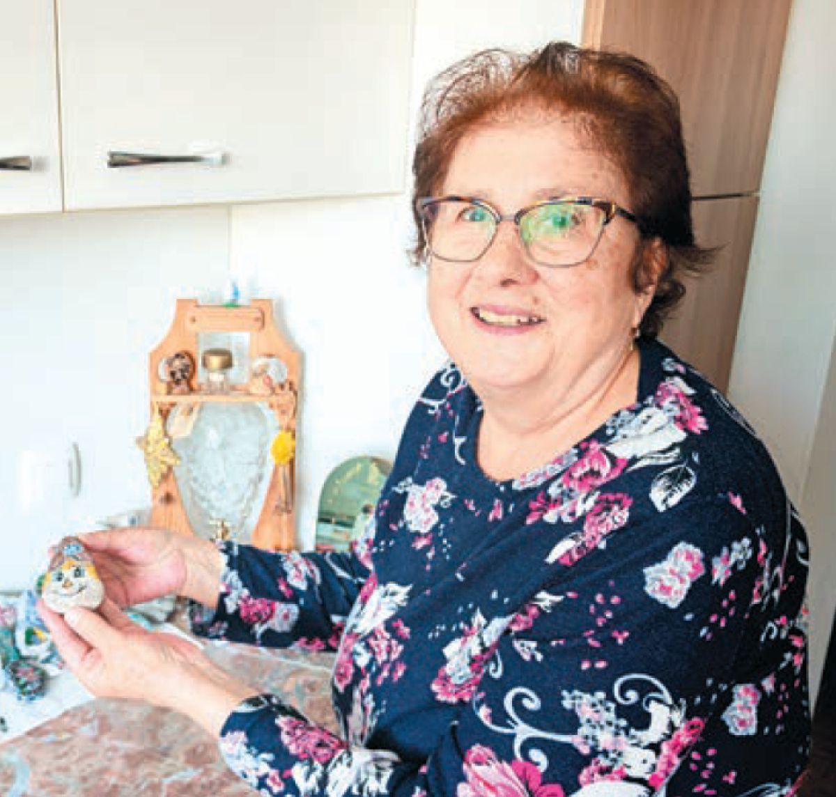 Še bolj kot ustvarjanje pa ljubi to, kar sledi – poslikane kamne namešča po mestu. Kot presenečenja. »Na avtobusno postajo, pred trgovino, na klopco, na ograjico. Nekatere najdejo otroci, nekatere drugi,« pravi v smehu. Potem pa ji na družbenem omrežju pišejo, kako jih je osrečilo. In tudi ona je takrat srečna. Najdragocenejši kamen je tisti, ki ga je našla sama, po naključju, na krožišču pri trgovini. Bil je moker, umazan, a ko ga je doma oprala, je na njem zagledala popoln križ. »To je kamen sreče. Imam ga v škatlici, ne dam ga nikomur. Tega mi je Bog poslal,« je prepričana in ga pokaže.