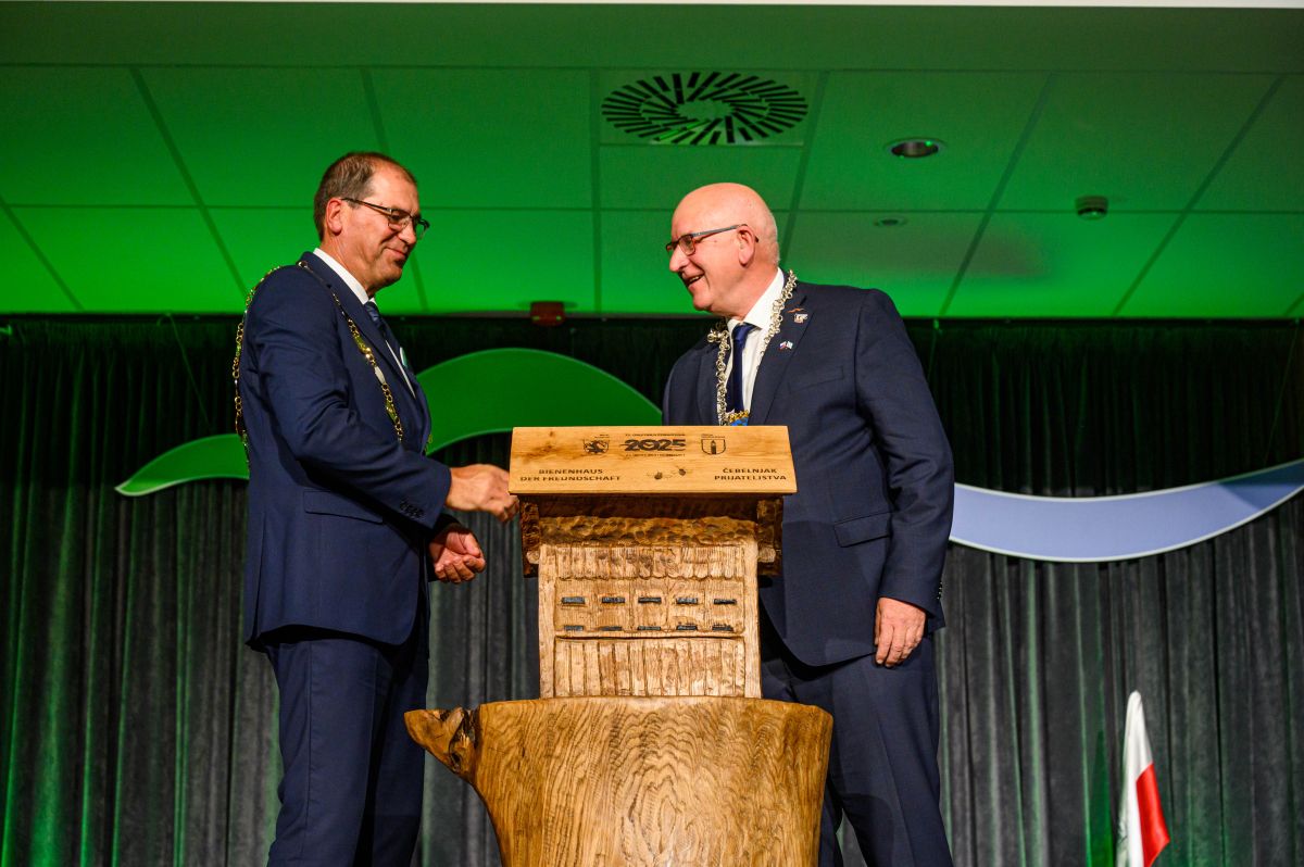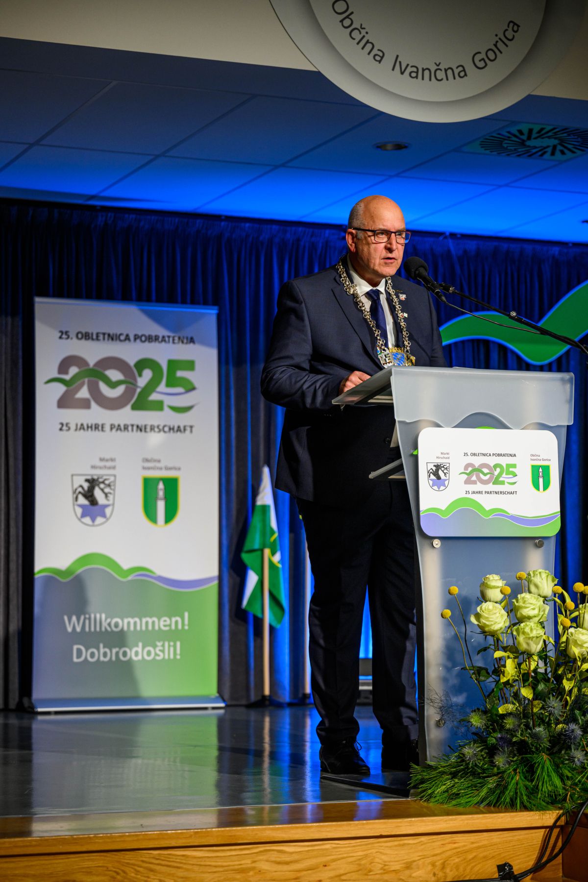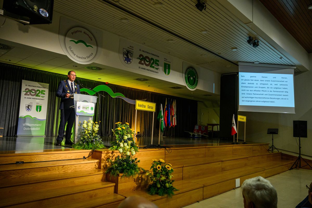 Izpostavil je pomen medsebojnih izmenjav učencev in dijakov ter se zahvalil posameznikom in društvom, ki so z lastnim prostovoljnim delom gradili vezi med občinama. »Naše sodelovanje temelji na iskrenem prijateljstvu ljudi dveh različnih narodov, ki pa sta si po navadah, kulturi in vrednotah zelo podobna. To je pravi temelj Evrope, ki jo gradimo od spodaj – iz občin, skupnosti in prijateljstev,« je dodal.