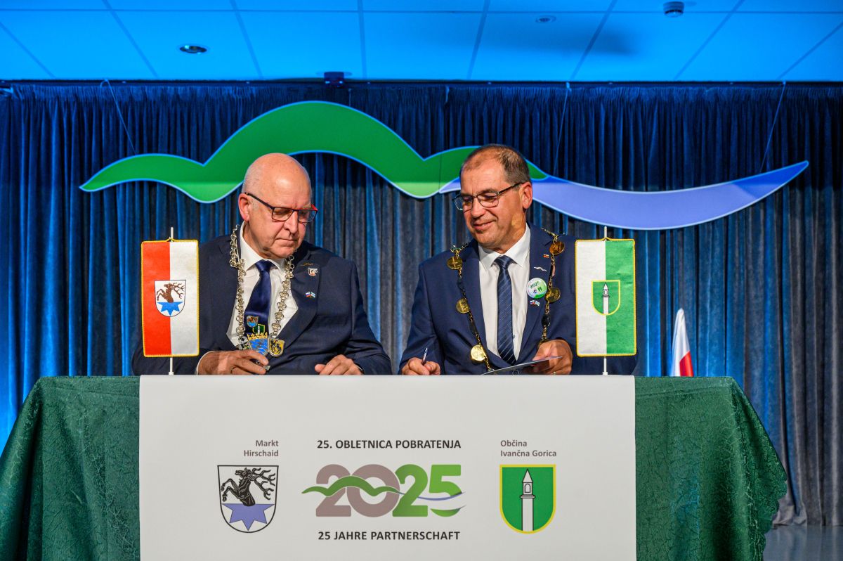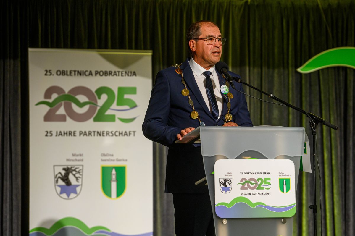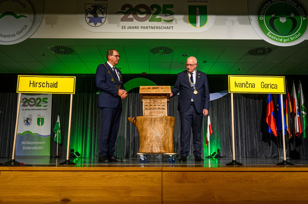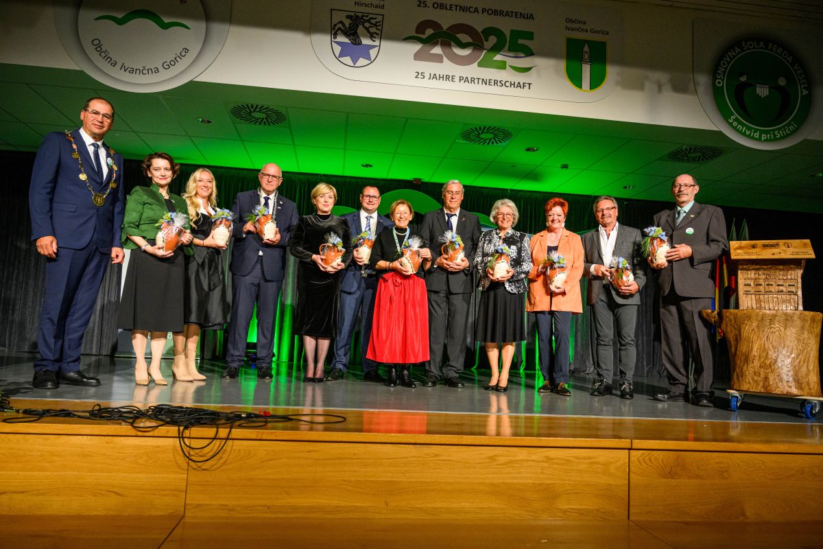 Župan Hirschaida Klaus Homann je poudaril, da četrt stoletja prijateljstva pomeni veliko več kot podpise na papirju: »To so mostovi med ljudmi, izmenjave učencev, kulturne prireditve, obiski društev in osebna prijateljstva, ki rastejo in se ohranjajo. Hvaležni smo vsem, ki ste v teh letih to partnerstvo napolnili z življenjem, in še posebej Inge in Hubertu Patzelt, brez katerih tega prijateljstva danes ne bi bilo«, je dejal župan Homann in z nasmehom dodal, da se iz dolgoletnega prijateljstva še ni razvila nobena slovensko- nemška poroka, a po njegovih besedah je tudi za to še čas.