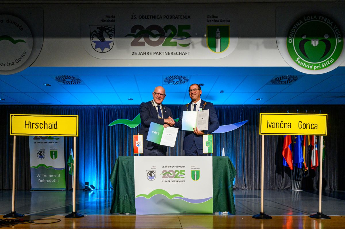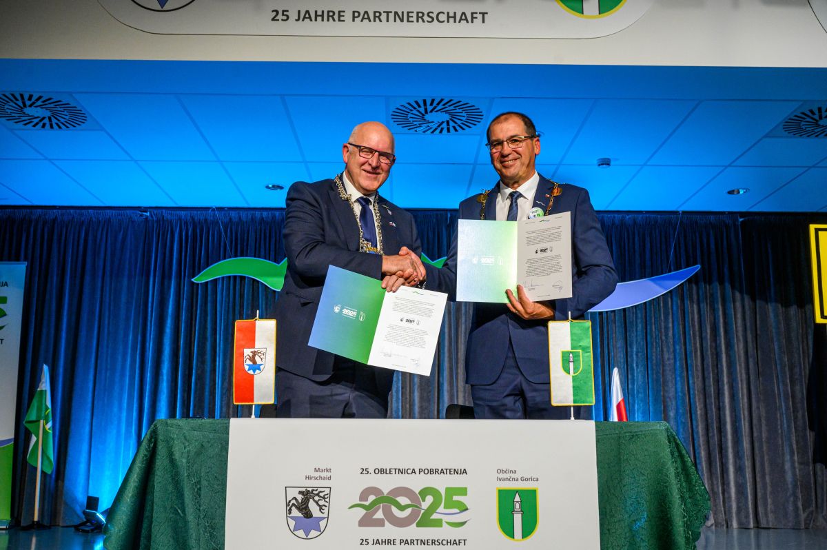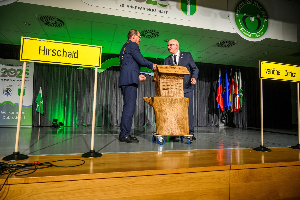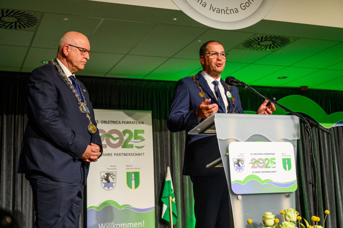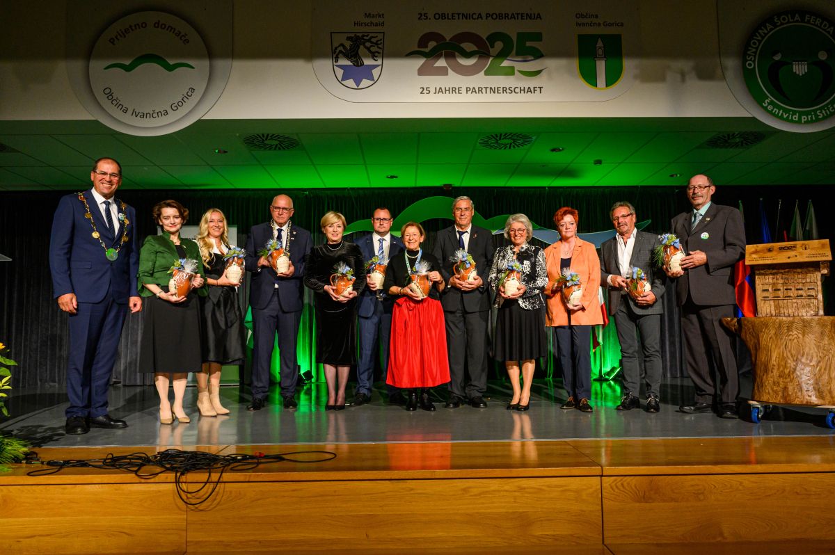 Župan Hirschaida Klaus Homann je poudaril, da četrt stoletja prijateljstva pomeni veliko več kot podpise na papirju: »To so mostovi med ljudmi, izmenjave učencev, kulturne prireditve, obiski društev in osebna prijateljstva, ki rastejo in se ohranjajo. Hvaležni smo vsem, ki ste v teh letih to partnerstvo napolnili z življenjem, in še posebej Inge in Hubertu Patzelt, brez katerih tega prijateljstva danes ne bi bilo«, je dejal župan Homann in z nasmehom dodal, da se iz dolgoletnega prijateljstva še ni razvila nobena slovensko- nemška poroka, a po njegovih besedah je tudi za to še čas.