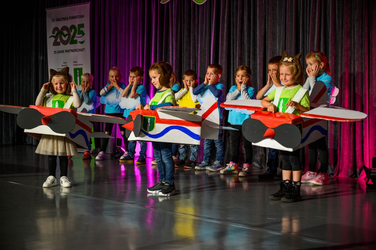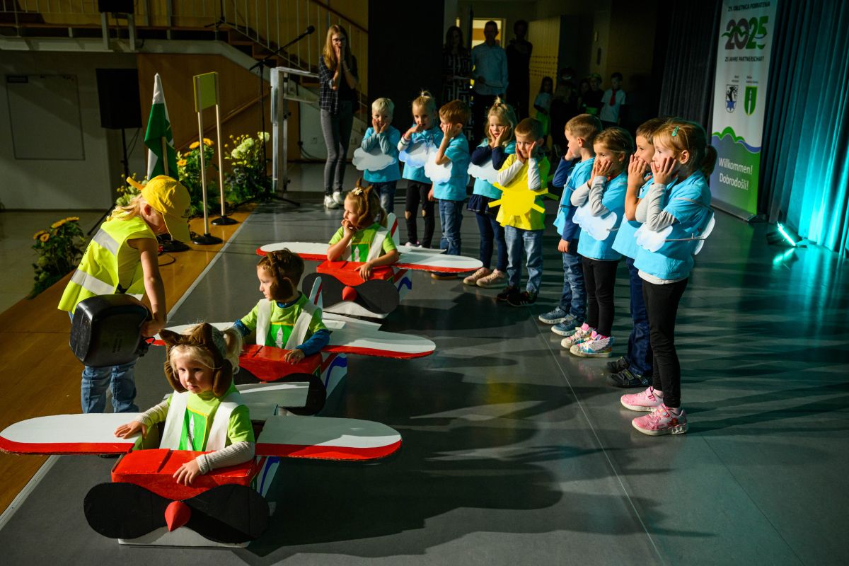 Slovesnost se je začela s slovensko in nemško himno v izvedbi Godbe Stična. Dobrodošlico sta izrekla učenca OŠ Ferda Vesela Šentvid pri Stični Mirjam Dremelj in Lenart Hobič. V nadaljevanju so dijaki Srednje šole Josipa Jurčiča Ivančna Gorica s prizorom o zakoncih Patzelt simbolično prikazali začetke prijateljstva med Stično in Hirschaidom, otroci Vrtca Ivančna Gorica, enot Videk in Pikapolonica, pa so na igriv način uprizorili povezovanje gasilskih društev in letalskih klubov obeh občin.