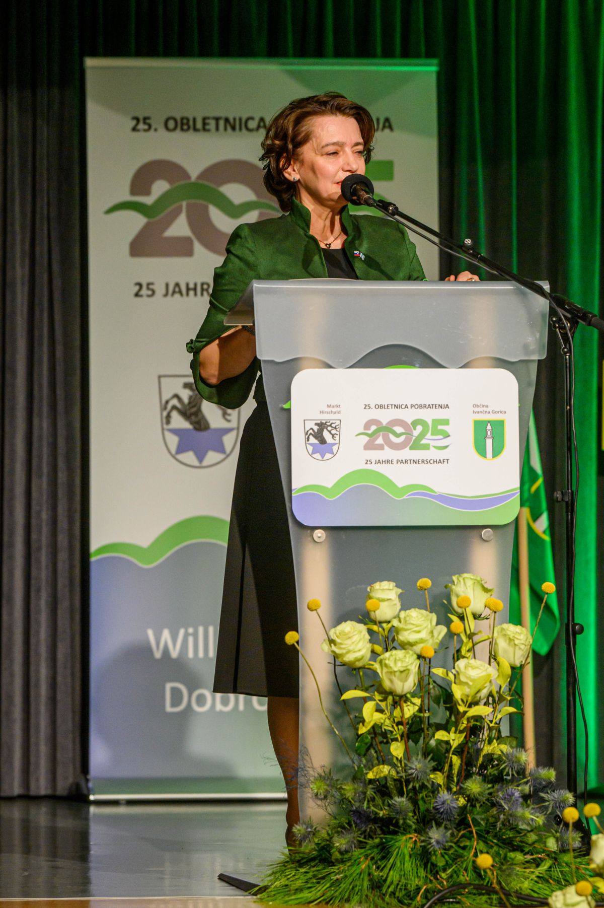 »Pobratenje med Ivančno Gorico in Hirschaidom je dokaz, da Evropa ni le politični projekt, ampak so to ljudje, skupnosti in prijateljstva. Tukaj se gradi prava Evropa – od spodaj navzgor, med občinami in državljani,« je dejala. Poudarila je praktične koristi pobratenja: mladi pridobivajo dragocene izkušnje, občini pa priložnosti za gospodarski razvoj, turizem in skupne projekte.