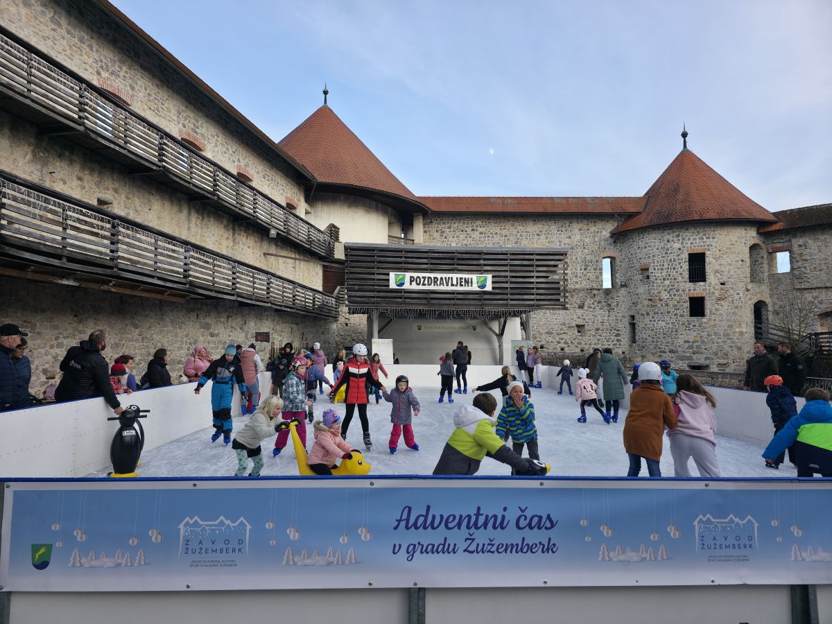 Občina je po izjemnem lanskem odzivu znova pripravila drsališče na grajskem dvorišču, slikoviti zimski atrakciji, ki pritegne tako najmlajše kot odrasle, domače in tuje goste. Drsanje je bilo danes brezplačno. Obiskovalci lahko na prizorišču najamejo drsalke in se pogrejejo s toplimi napitki, ki jih ponujajo na stojnicah.