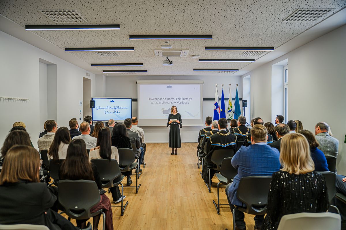 Slovesnost se je začela z akademsko himno Gaudeamus Igitur v izvedbi Mešanega mladinskega pevskega zbora Gimnazije Brežice. Zbrane je uvodoma nagovorila izr. prof. dr. Marjetka Rangus, dekanica Fakultete za turizem UM, ki je poudarila, da novi prostori ne pomenijo le infrastrukturnega premika, temveč tudi novo razvojno poglavje fakultete, ki je v 16-ih letih zrasla v mednarodno vpeto in prepoznavno izobraževalno ter raziskovalno ustanovo.