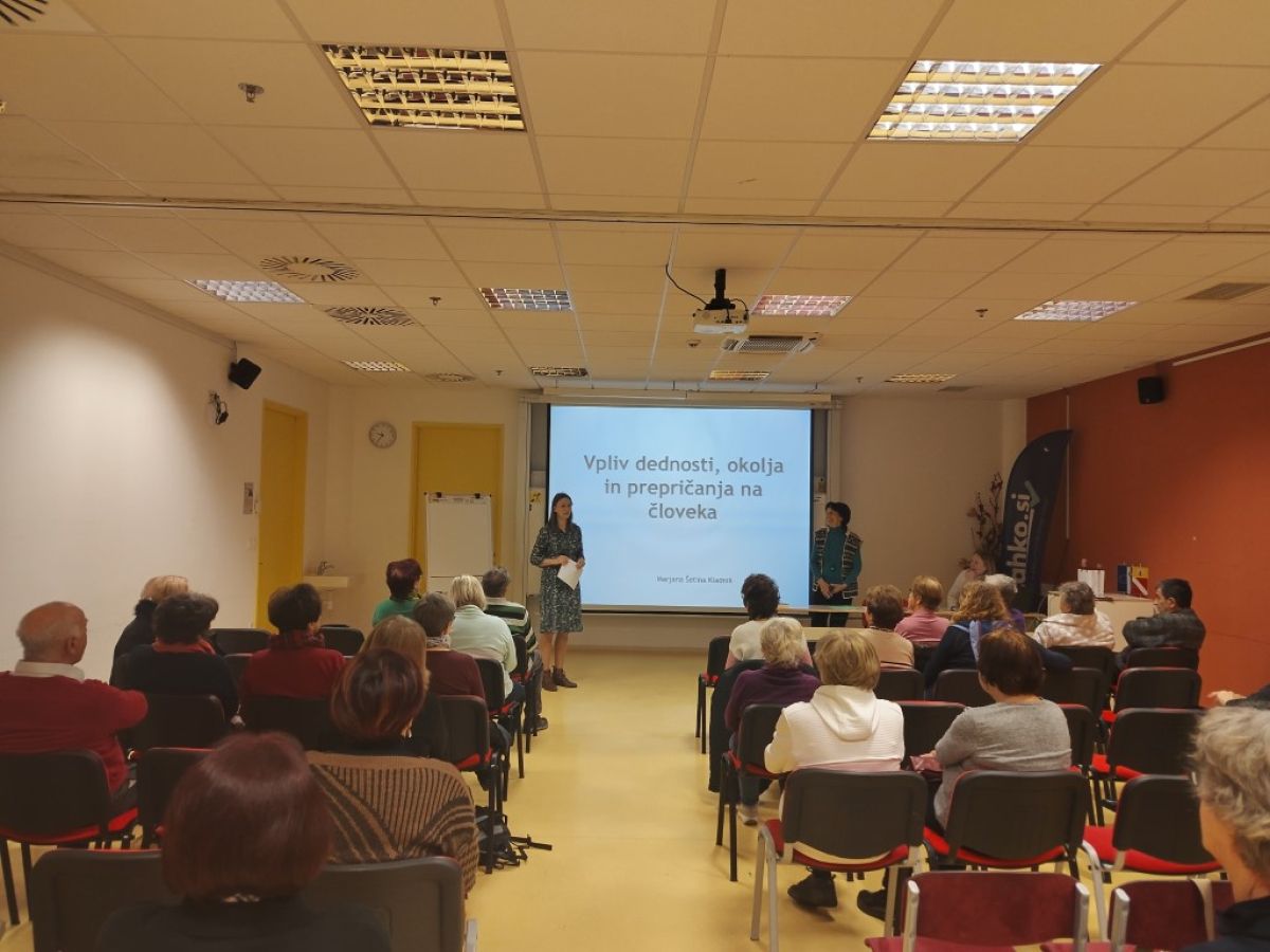 Že drugo srečanje nam je pripravila naša članica Marjana Šetina, upokojena psihologinja. V svojem predavanju nas je opozorila na vplive genetike, okolja in prepričanja, ki nam krojijo življenje. Torej ni vse v genetiki, saj lahko na svoje zdravje in življenje vplivamo tudi sami, ko se ne prepustimo usodi, ki jo je zapisala genetika.