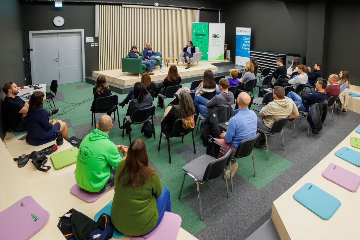 Ti so se zbrali na dogodku, posvečenem sodobnim pristopom v avdio-video produkciji in strateški uporabi podcastov. Dogodek, ki je potekal v treh sklopih in okviru projekta SRC-EDIH, je navdušil z izjemno energijo, konkretnim znanjem in vrhuncem večera – snemanje podcasta Atmosferci z gostom Igorjem Akrapovičem.