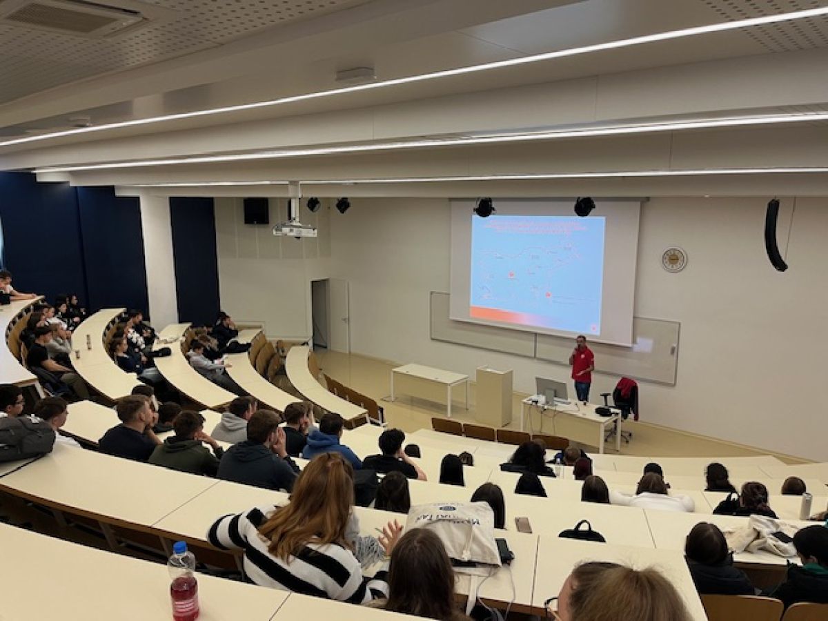 Kar 750 dijakov je pred tem prisluhnilo zanimivemu predavanju o krvodajalstvu, ki sta ga izvedla učitelj na Srednji zdravstveni in kemijski šoli Uroš Frankovič in predstavnik Rdečega križa Slovenije Boštjan Novak. Poudarila sta, da je darovanje krvi še vedno najplemenitejše humanitarno dejanje človeka, saj te tekočine ne more nadomestiti nobena umetna inteligenca.