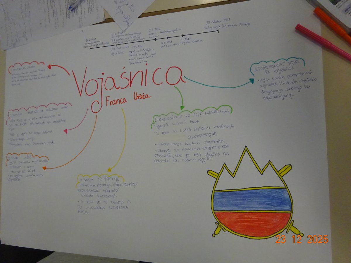 Preko vprašanj o Vojašnici Franca Uršiča so spoznali tudi nastanek, pomen in vlogo teritorialne obrambe, milice ter civilne obrambe pred in v času procesa osamosvajanja. Na koncu je vsaka skupina predstavila vsebino svojega dela, preko plakata, sošolcem.